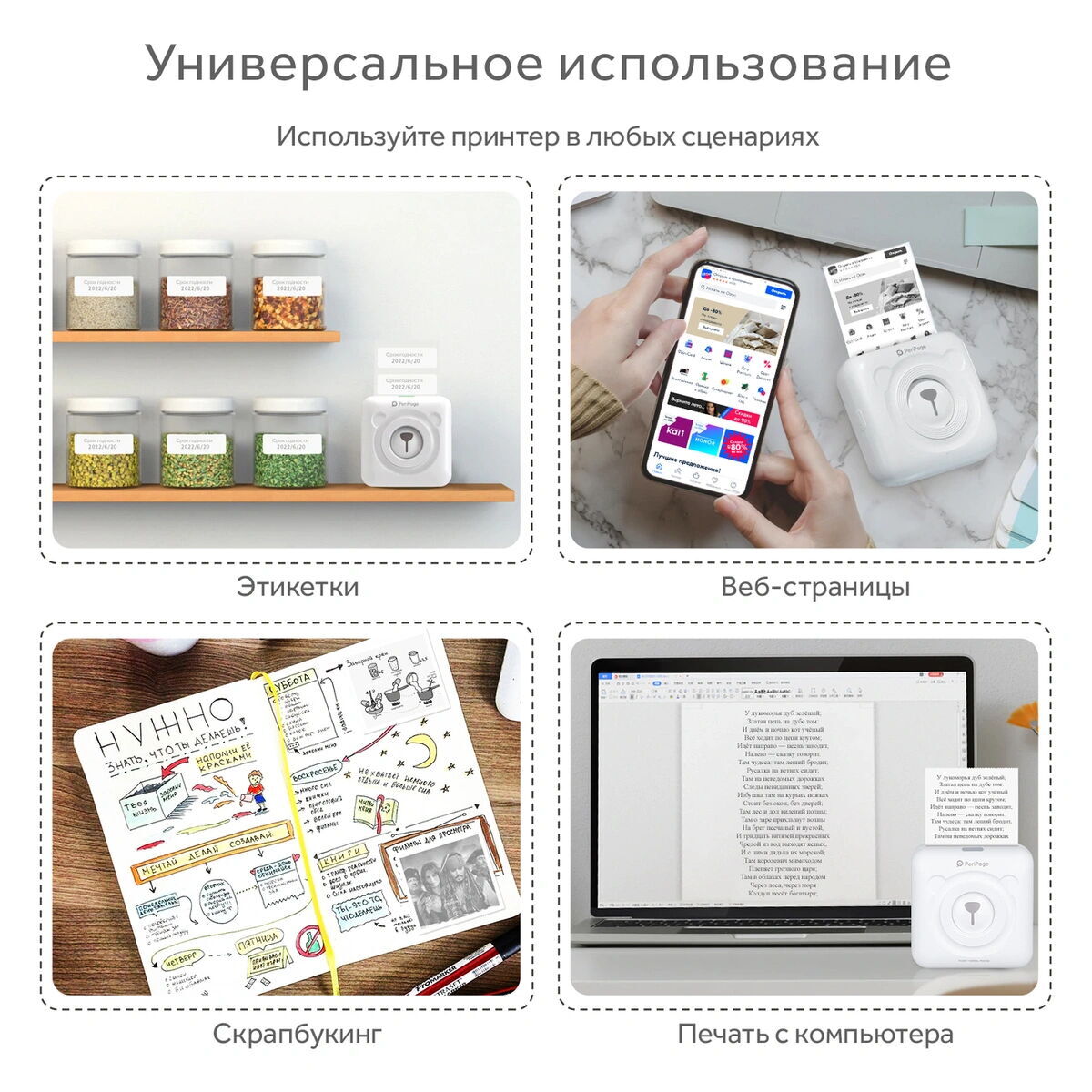 Мини-принтер Peripage Mini Printer A6 3 рулона 2024