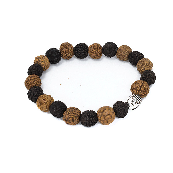 Четки браслет Будда комбинированный из ягод рудракши диаметр 1 см "Перо Павлина"