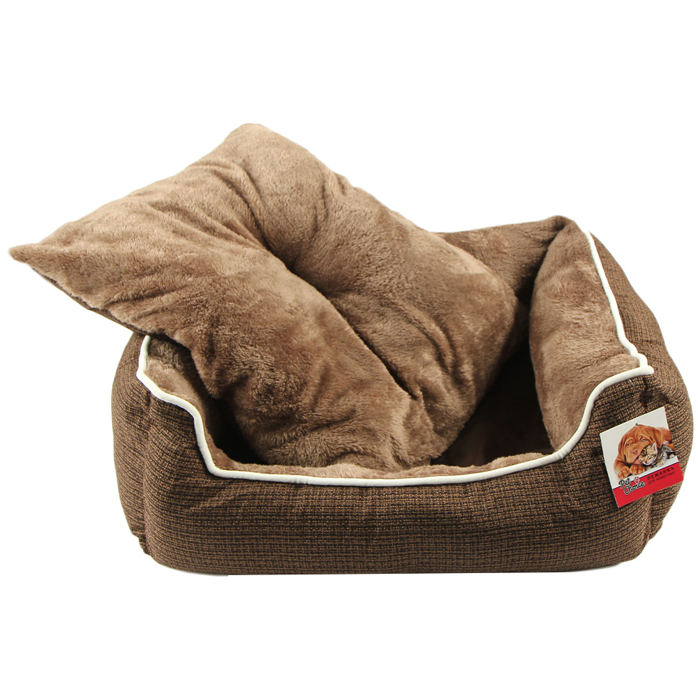 Лежак с бортом Pet Choice 84х66х19 см, меховой, съемная подушка, коричневый