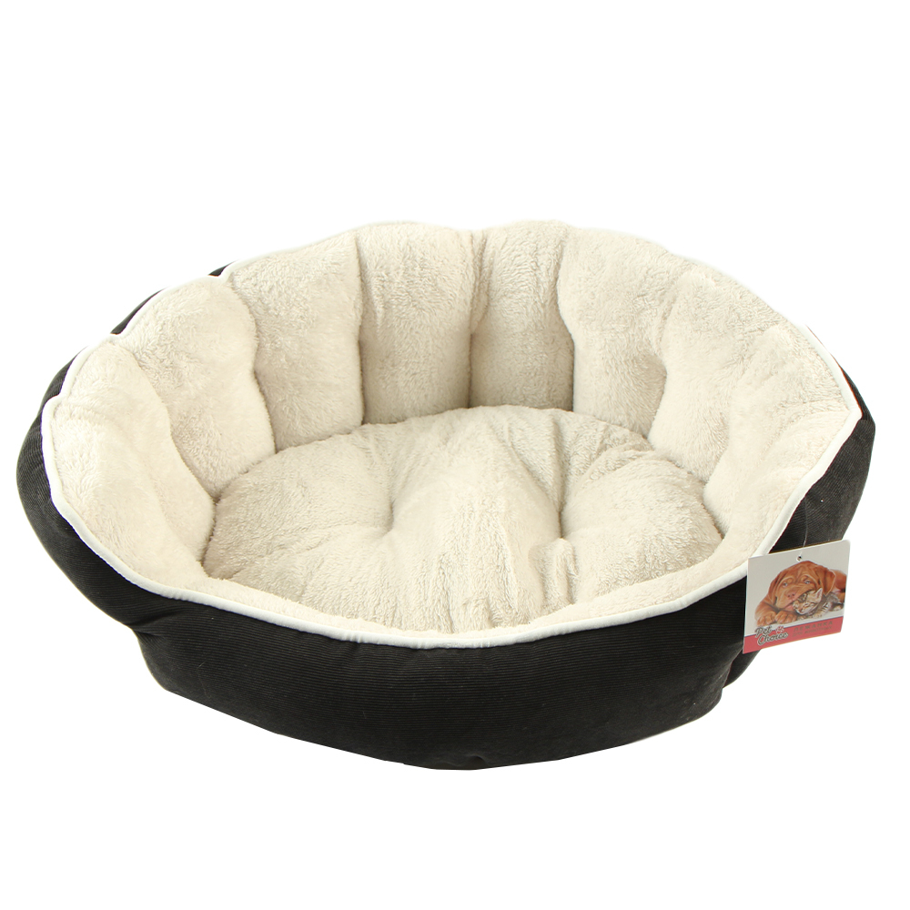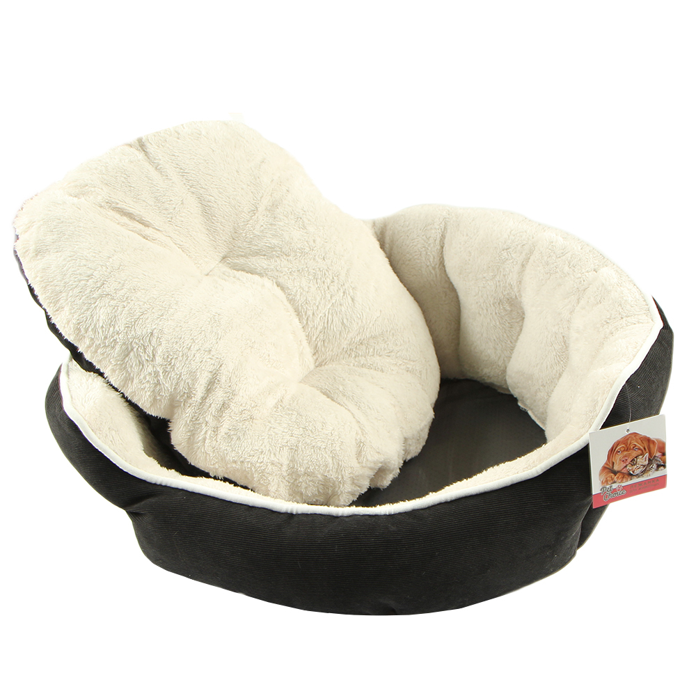 Лежак с бортом Pet Choice 48х42х17 см, вельвет, съемная подушка, черно-белый/ Лежак для собак/ Лежак для кошек