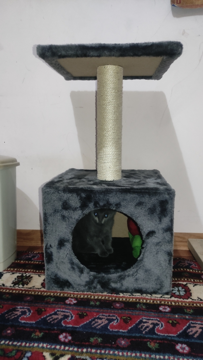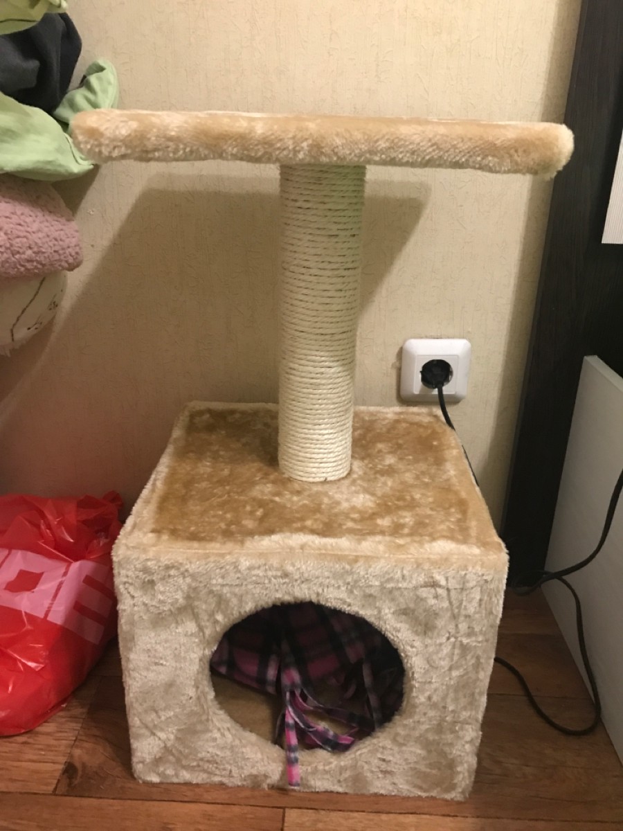 Когтеточка-домик Pet Choice, 30х30х57 см, темно-серый / Когтеточка столбик с лежанкой