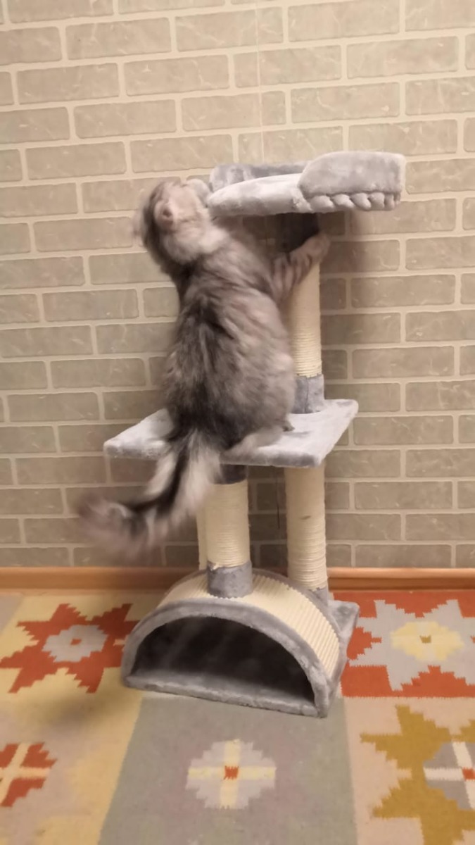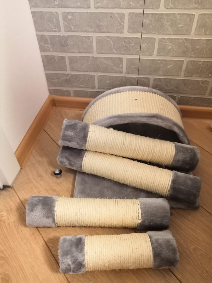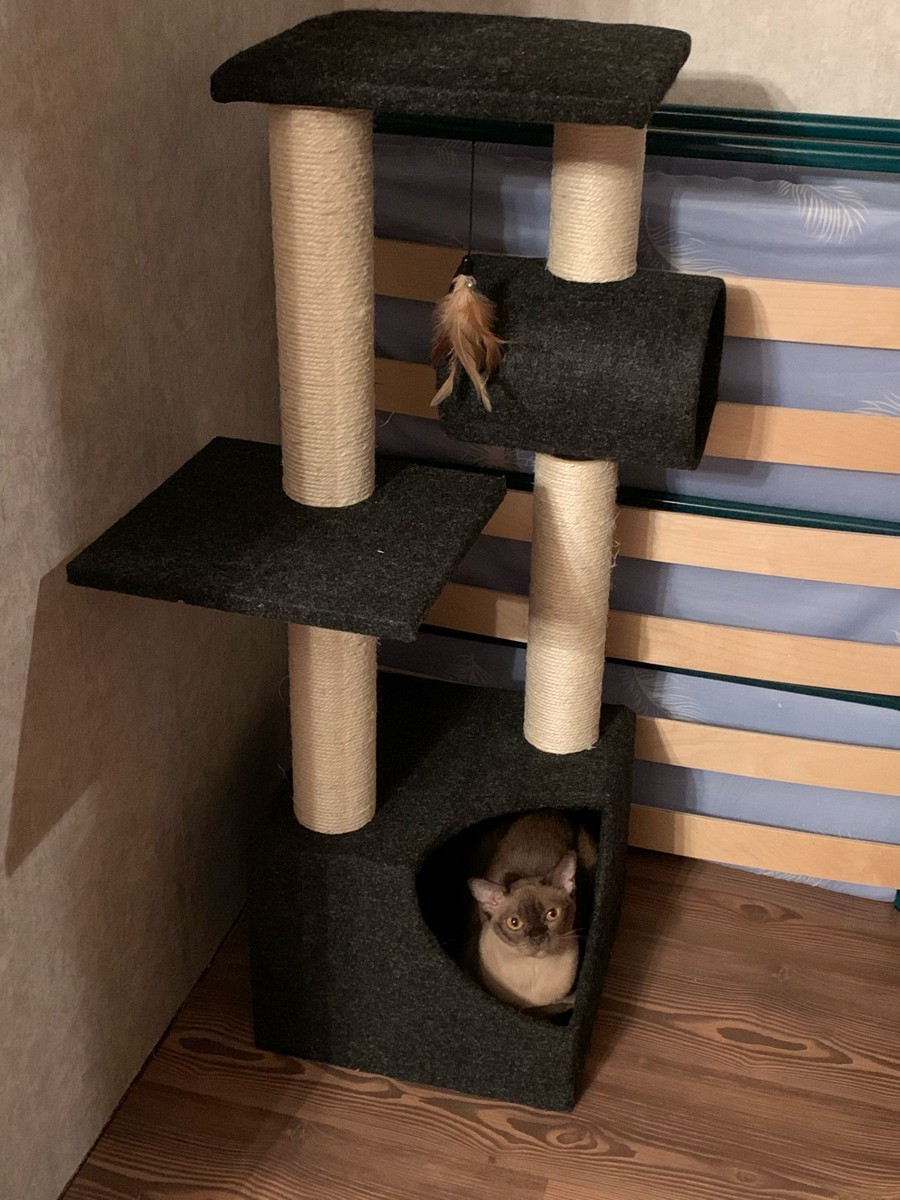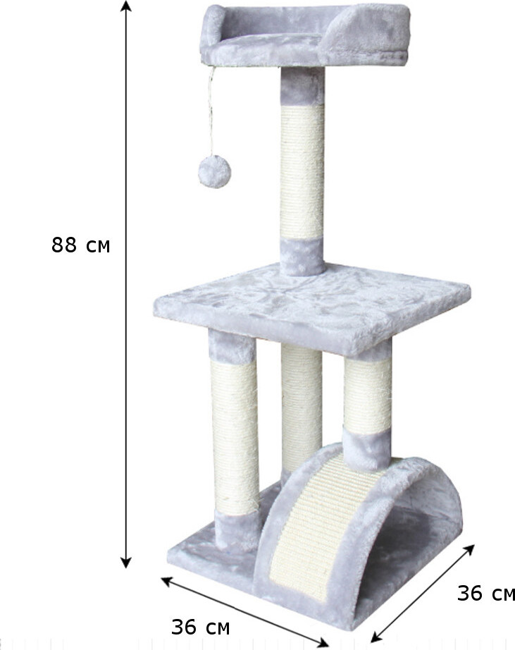 Когтеточка-комплекс Pet Choice, с игрушкой, 36х36х88 см, цвет серый