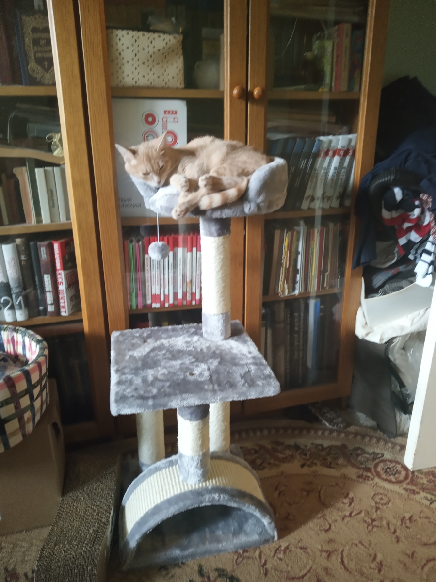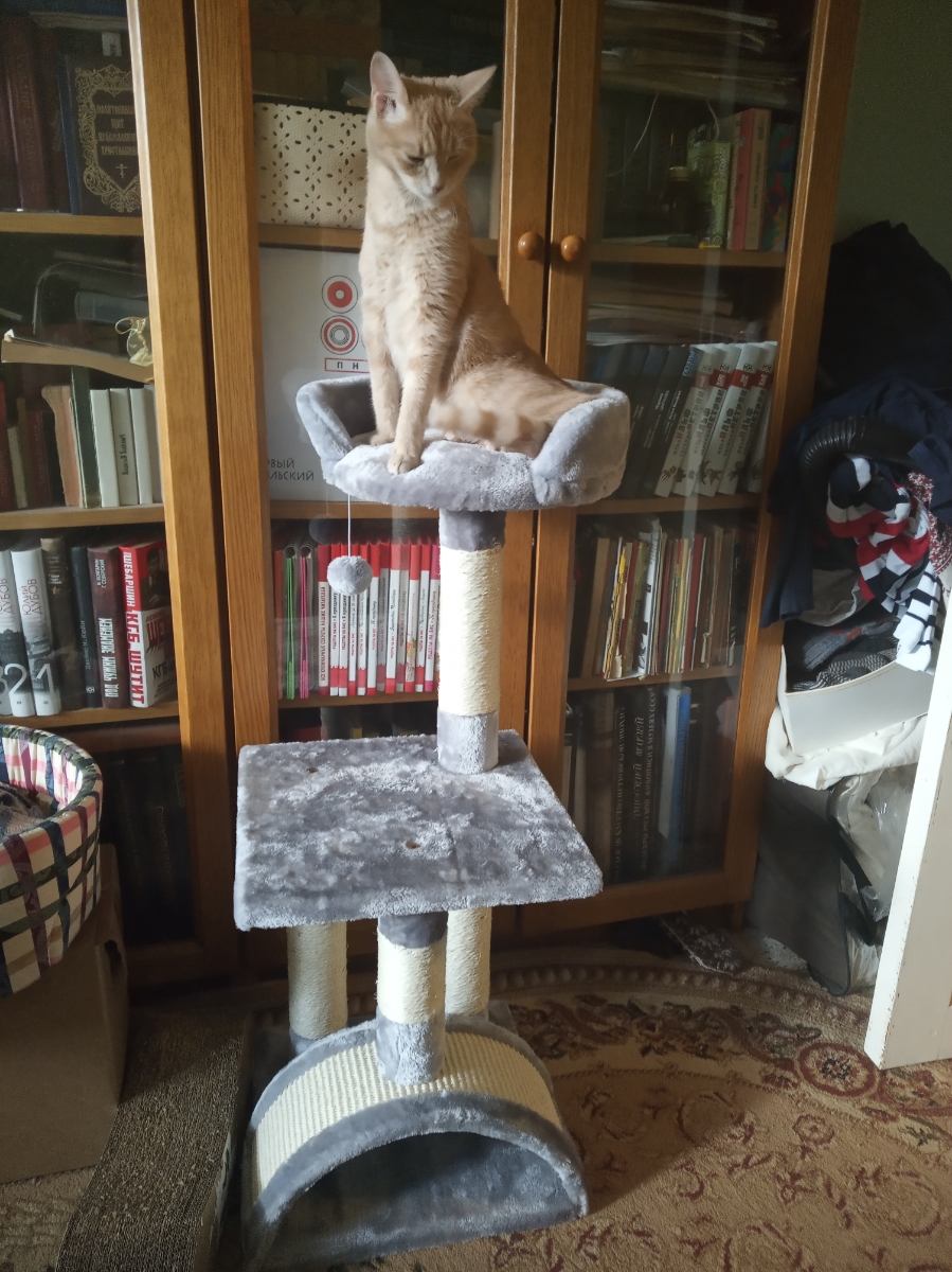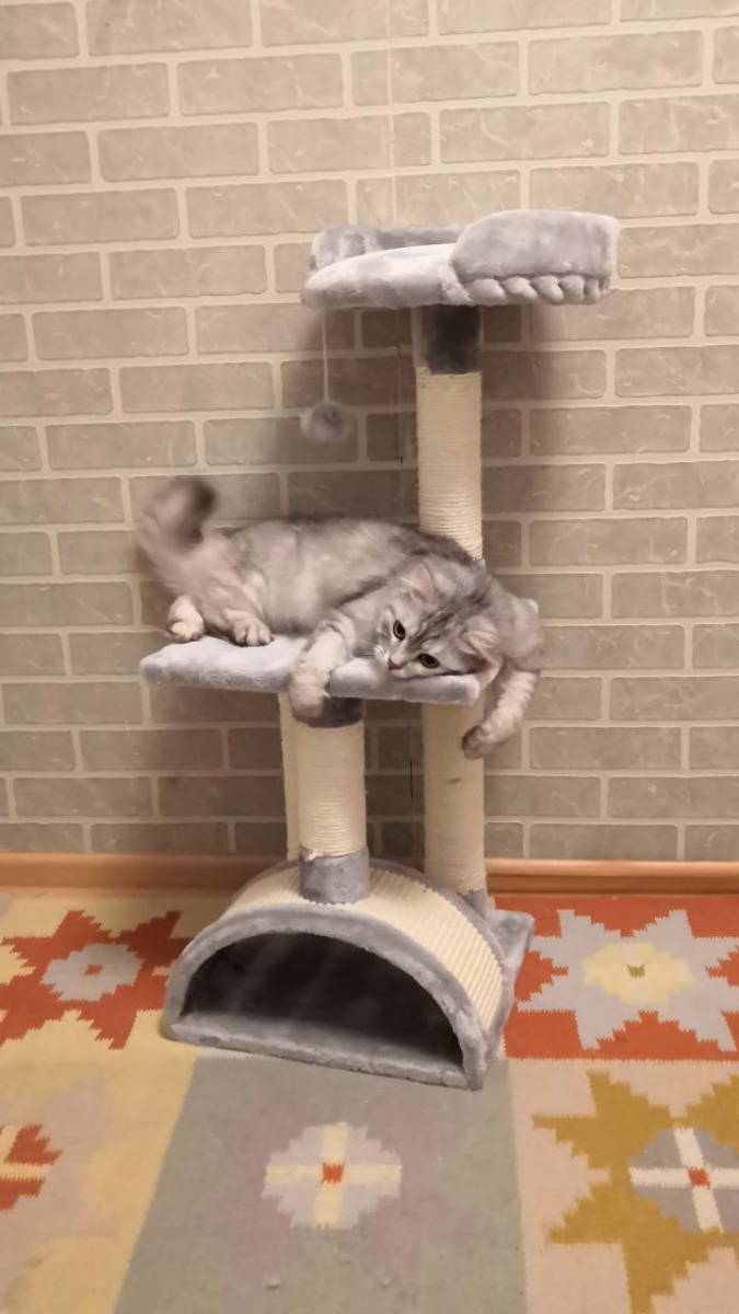 Когтеточка-комплекс Pet Choice, с игрушкой, 36х36х88 см, цвет серый