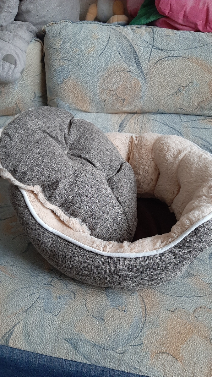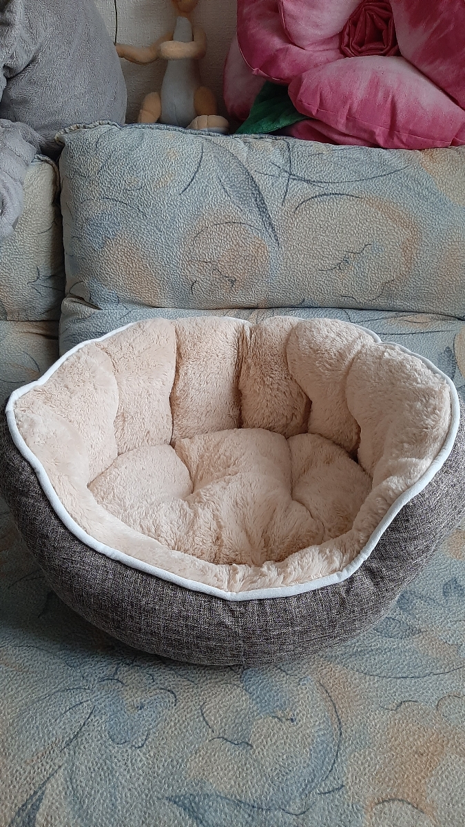 Лежак с бортом Pet Choice 70х58х22 см, меховой, коричневый / Съемная двусторонняя подушка / Лежанка подстилка для собак и кошек