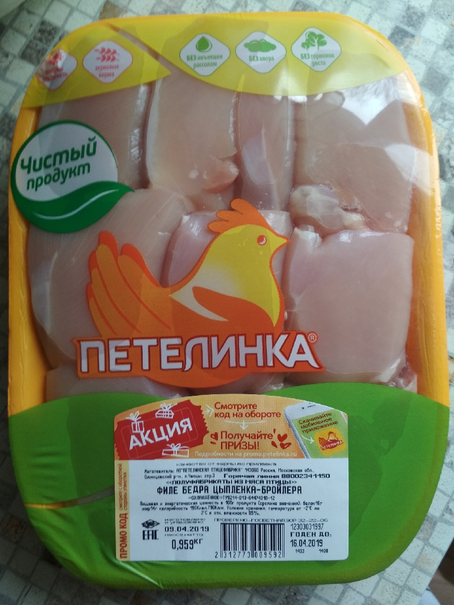 Филе грудки куриное Петелинка, охлажденное, 0,8 кг