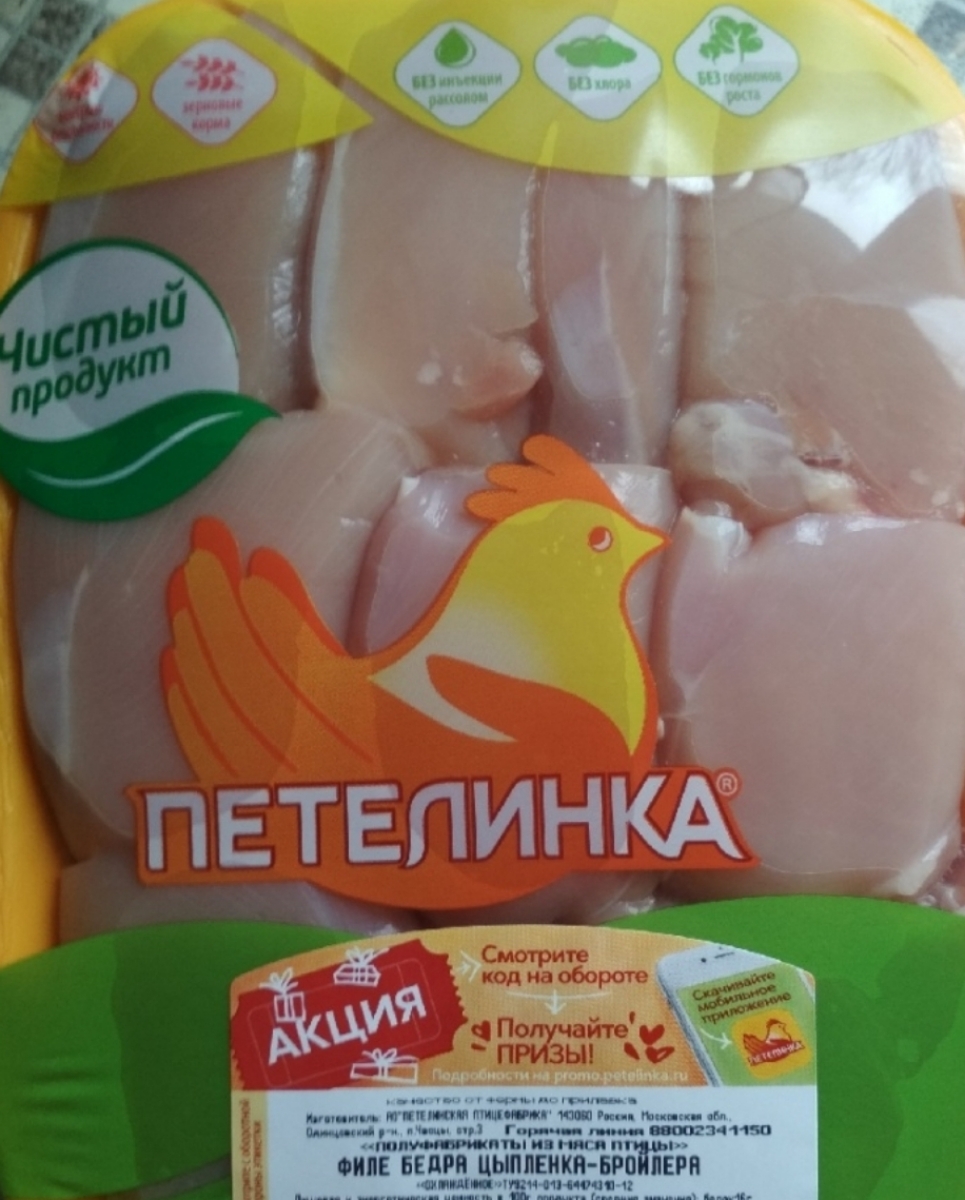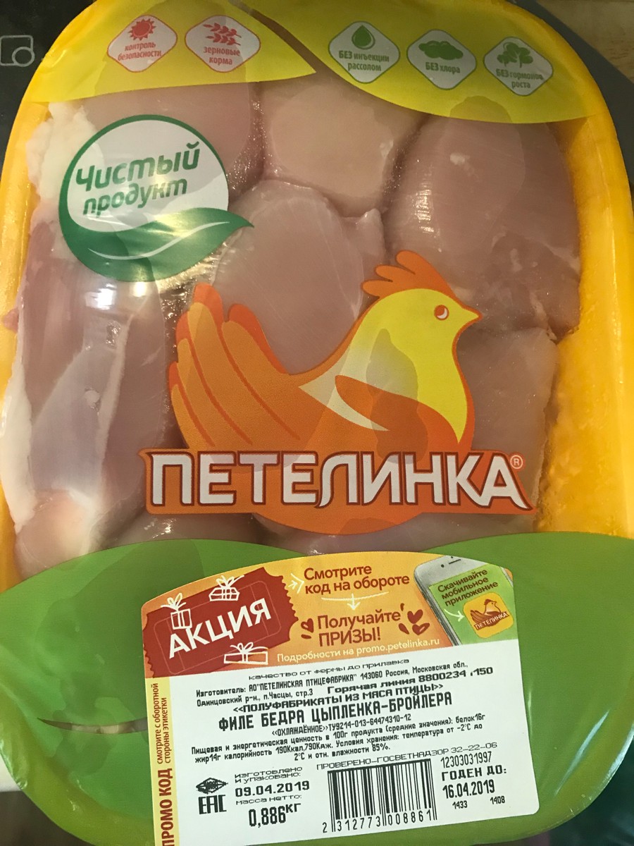 Филе бедра курицы Петелинка, охлажденное, 0,9 кг