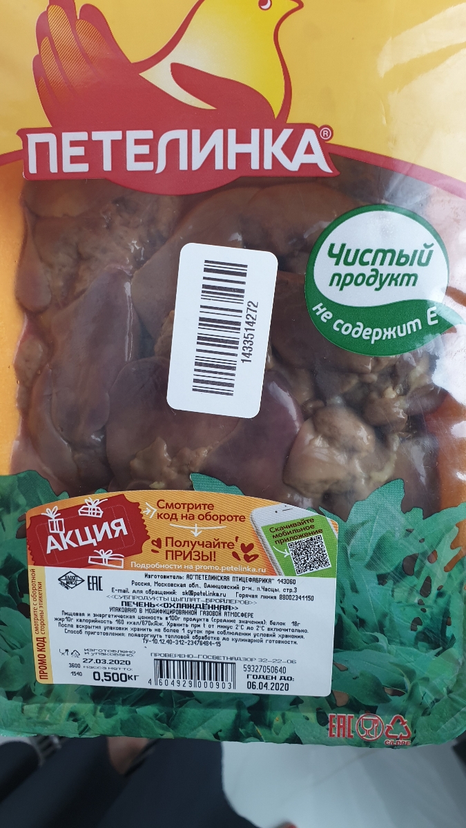 Печень куриная Петелинка, охлажденная, 500 г