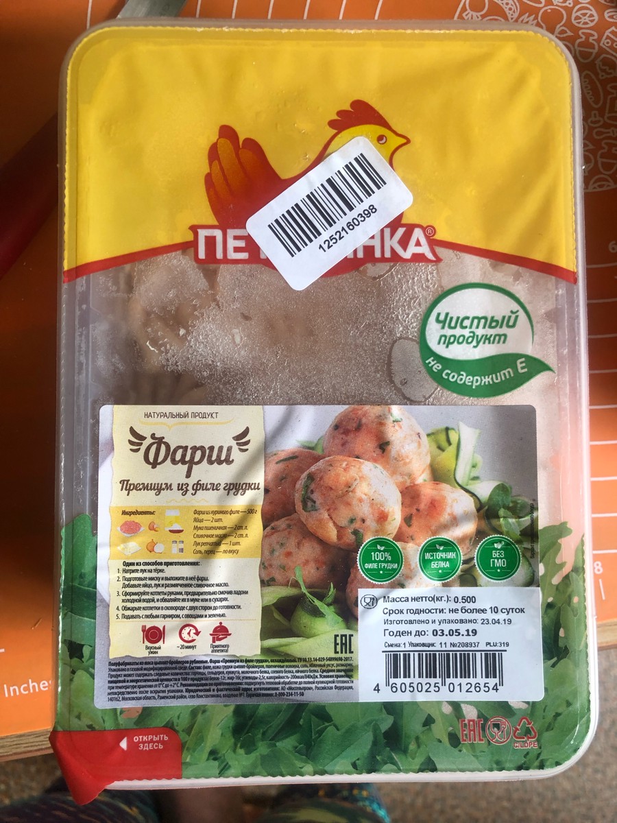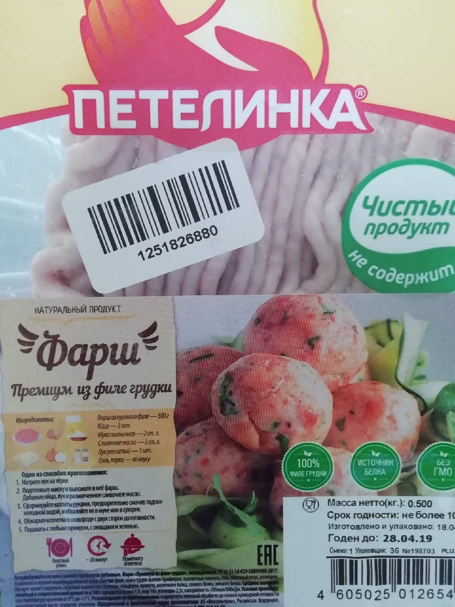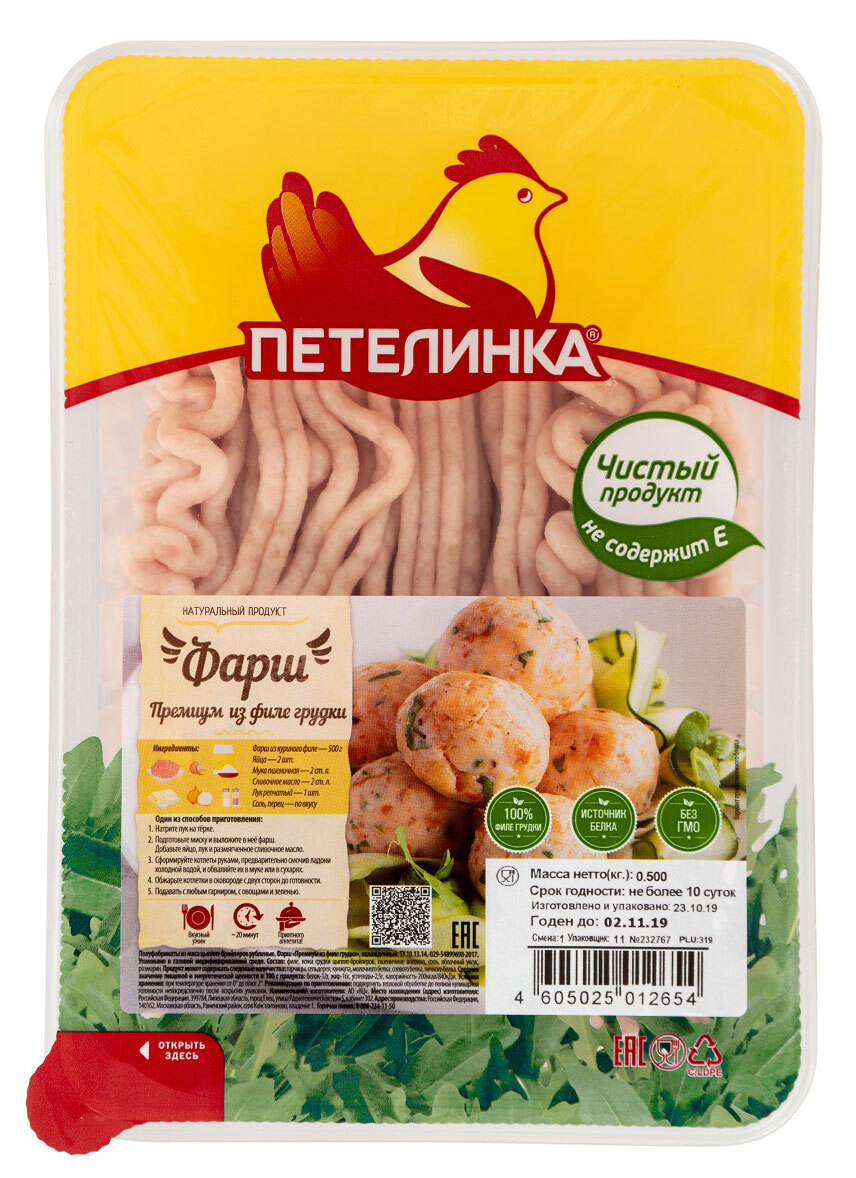 Фарш из куриной грудки Петелинка, охлажденный, 500 г
