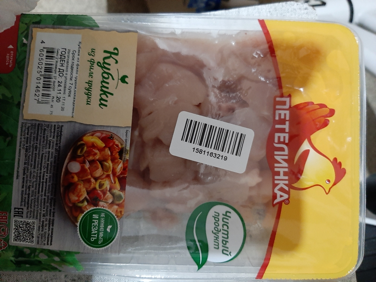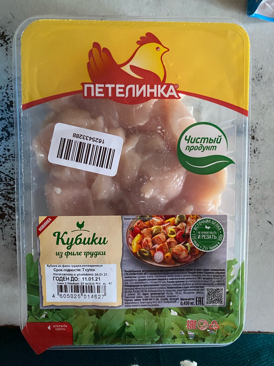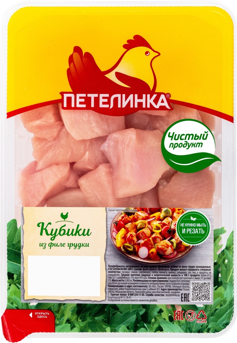 Кубики из куриной грудки Петелинка, охлажденные, 450 г