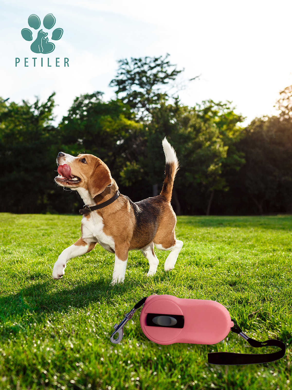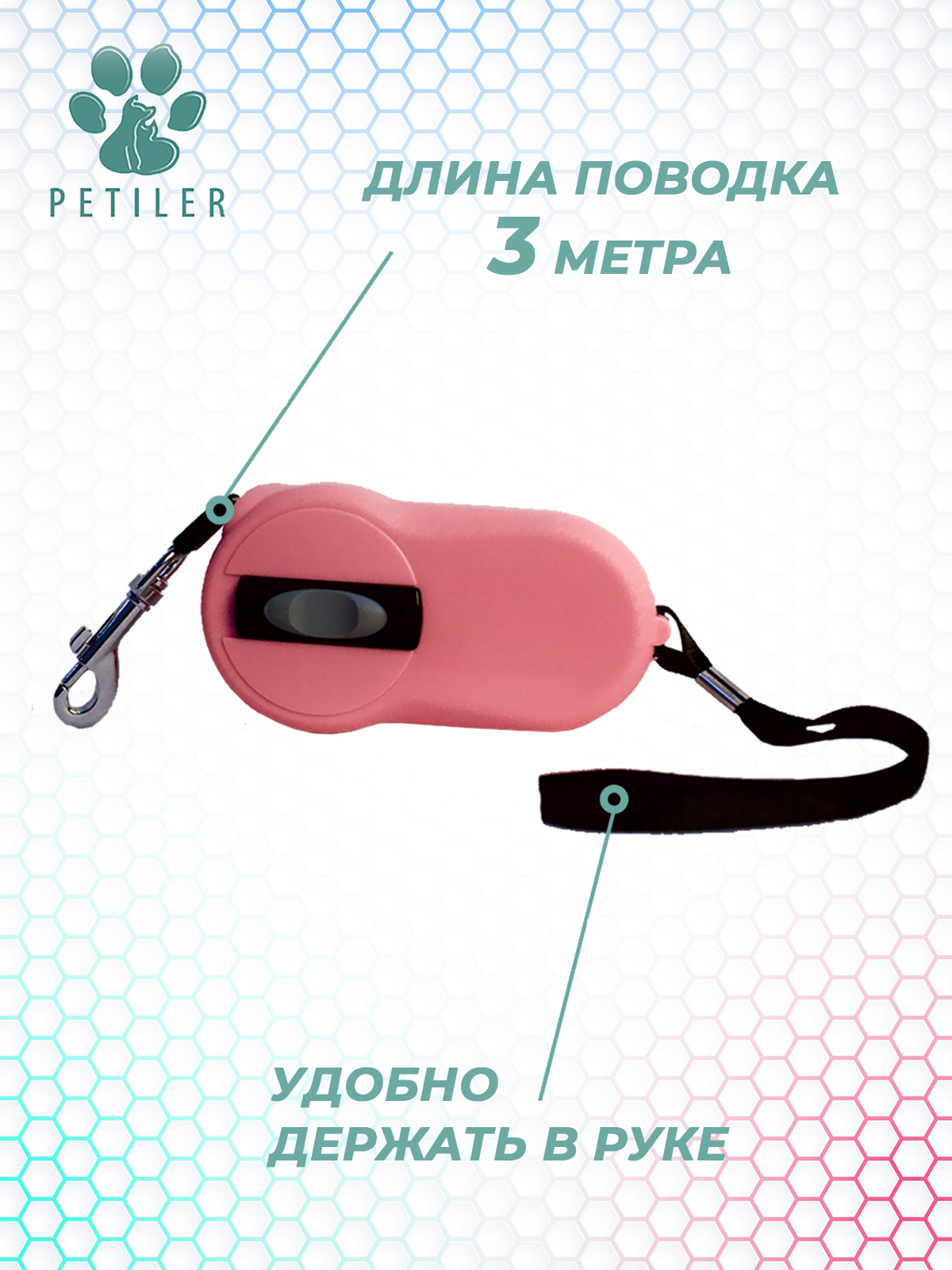 Поводок-рулетка для собак Petiler, длина 3 м., розовая