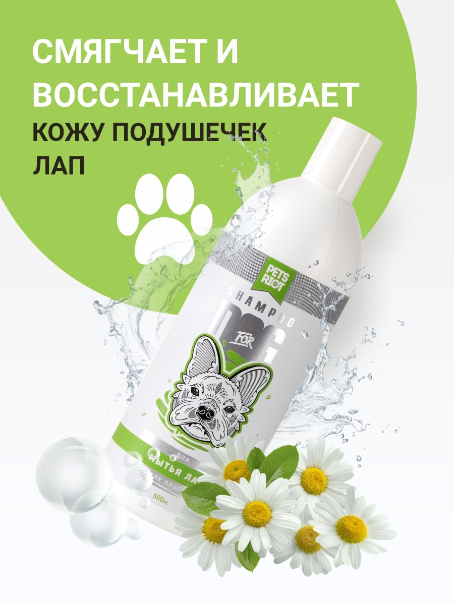 Pets Riot, шампунь для мытья лап после прогулки 500ml, Гипоаллергенный