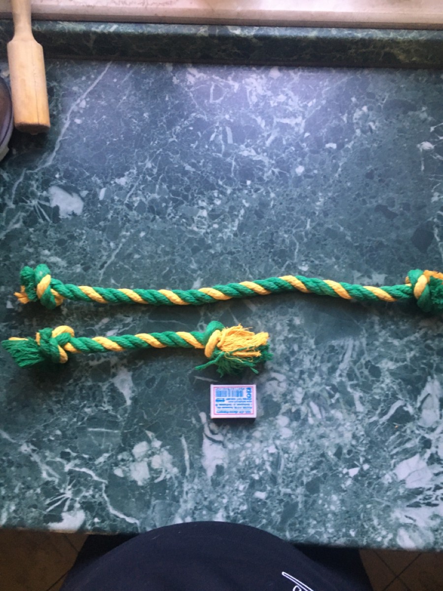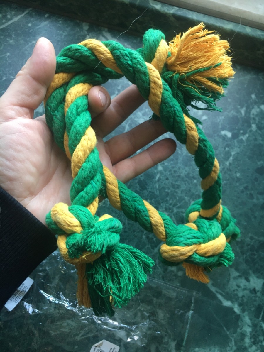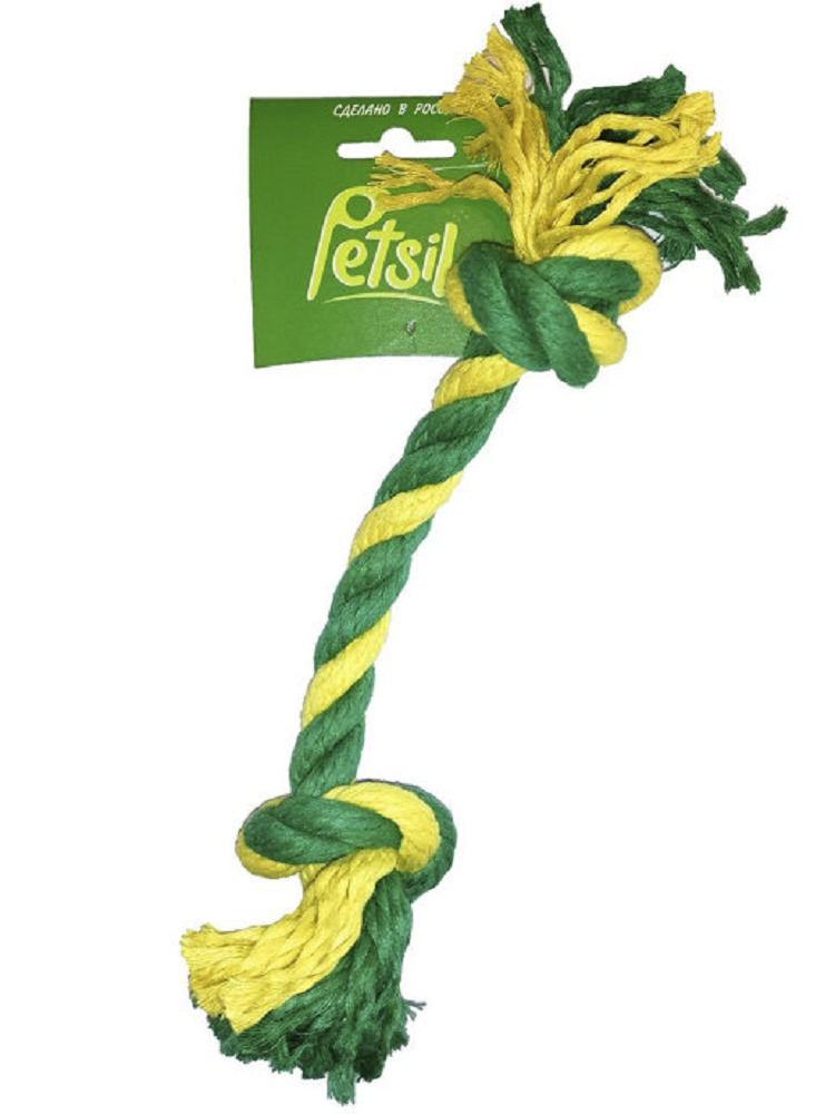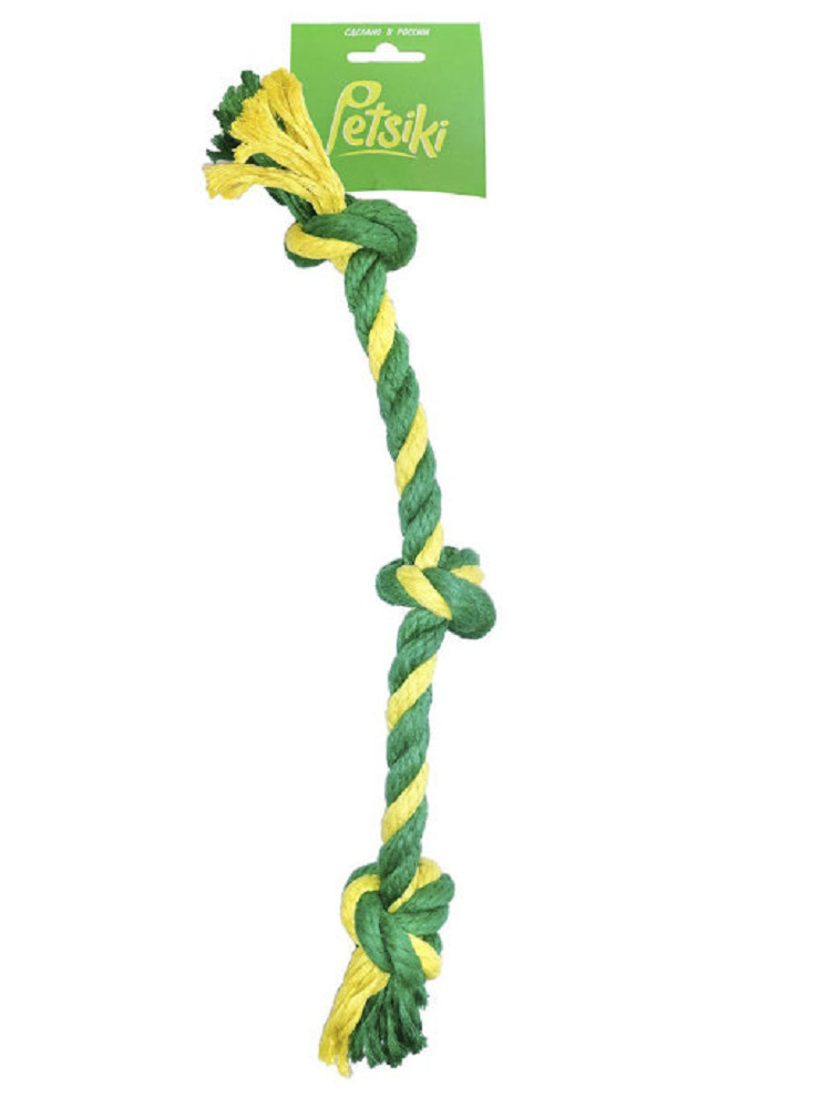 Мяч канатный Petsiki средний (желтый-зеленый-зеленый), длина 35см