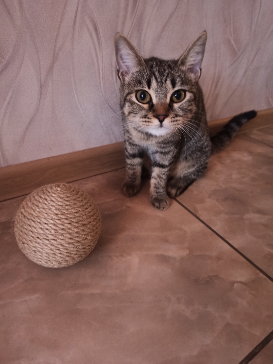 Когтеточка Petsiki Клубок с ручкой малый, динамическая, диаметр 8 см
