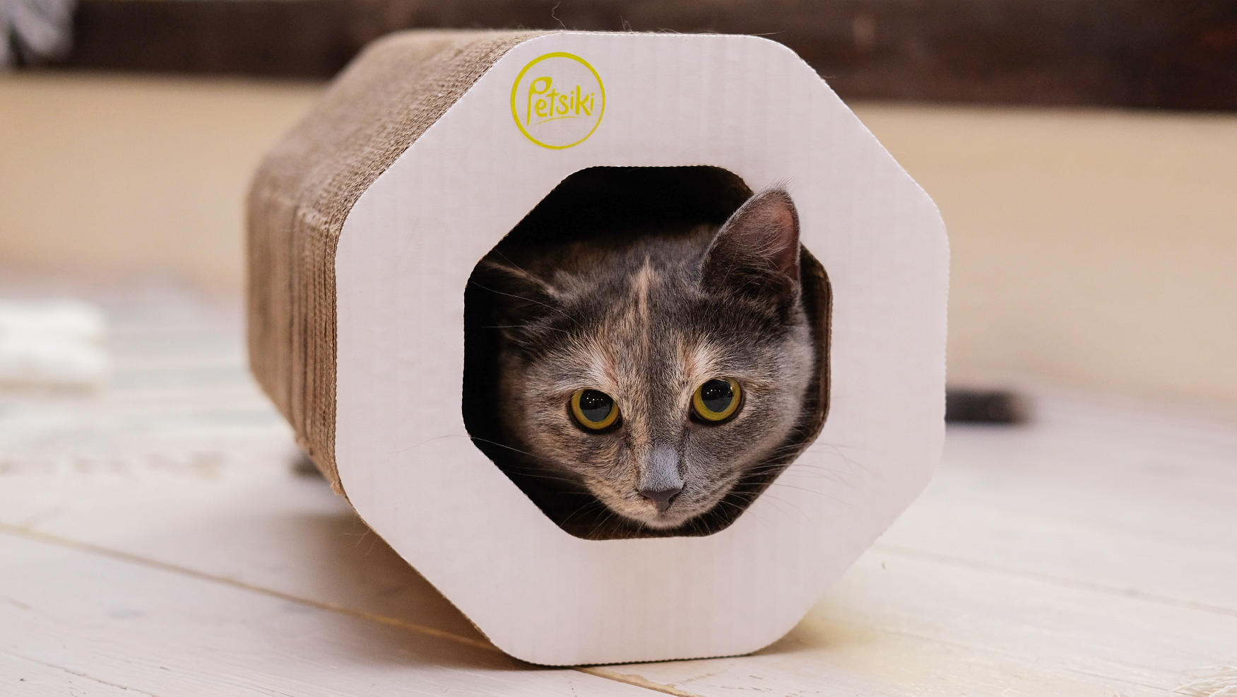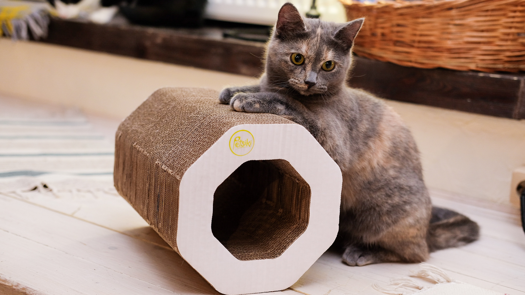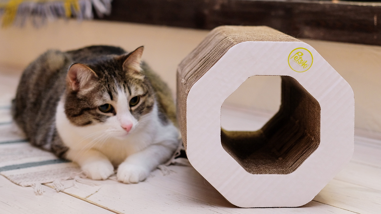 Когтеточка-домик Petsiki Okti M, картон, 300*190*300 мм