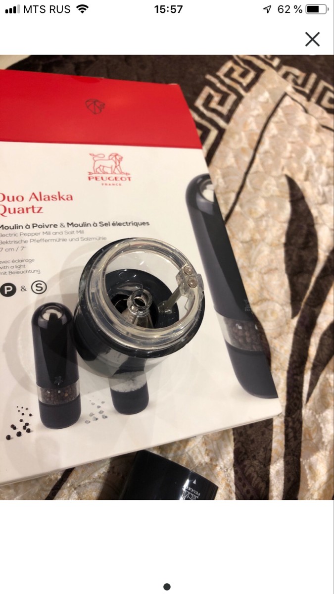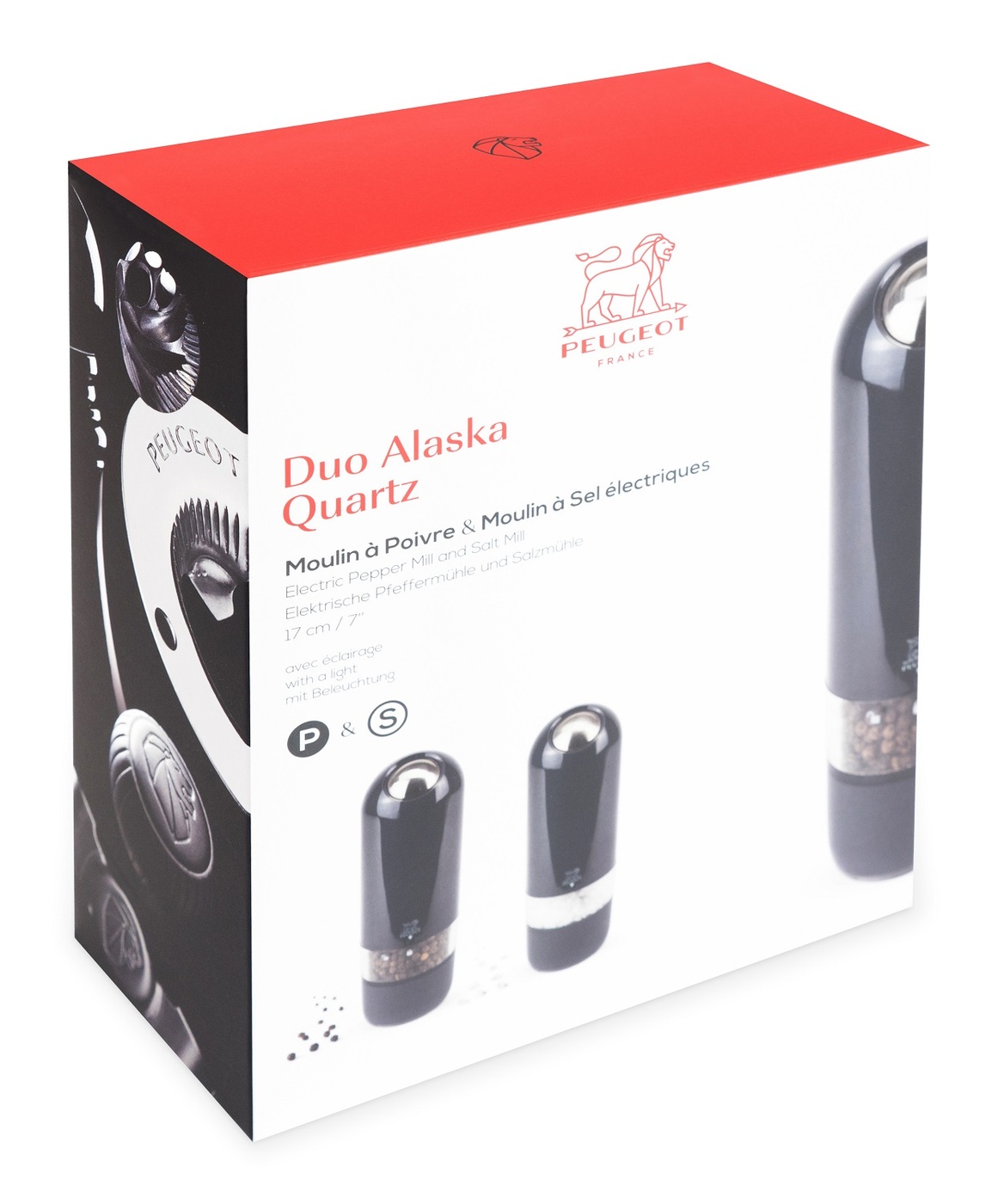 Набор электрических мельниц для соли и перца Peugeot Alaska Duo, цвет: черный, высота 17 см