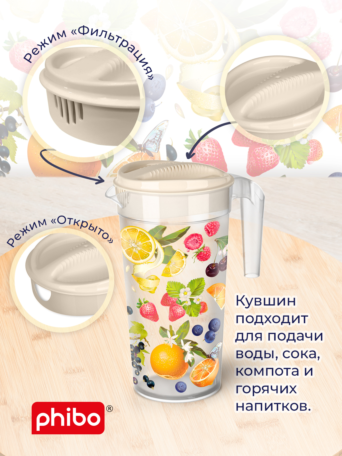Кувшин для воды 1,5 литра (фрукты), Phibo