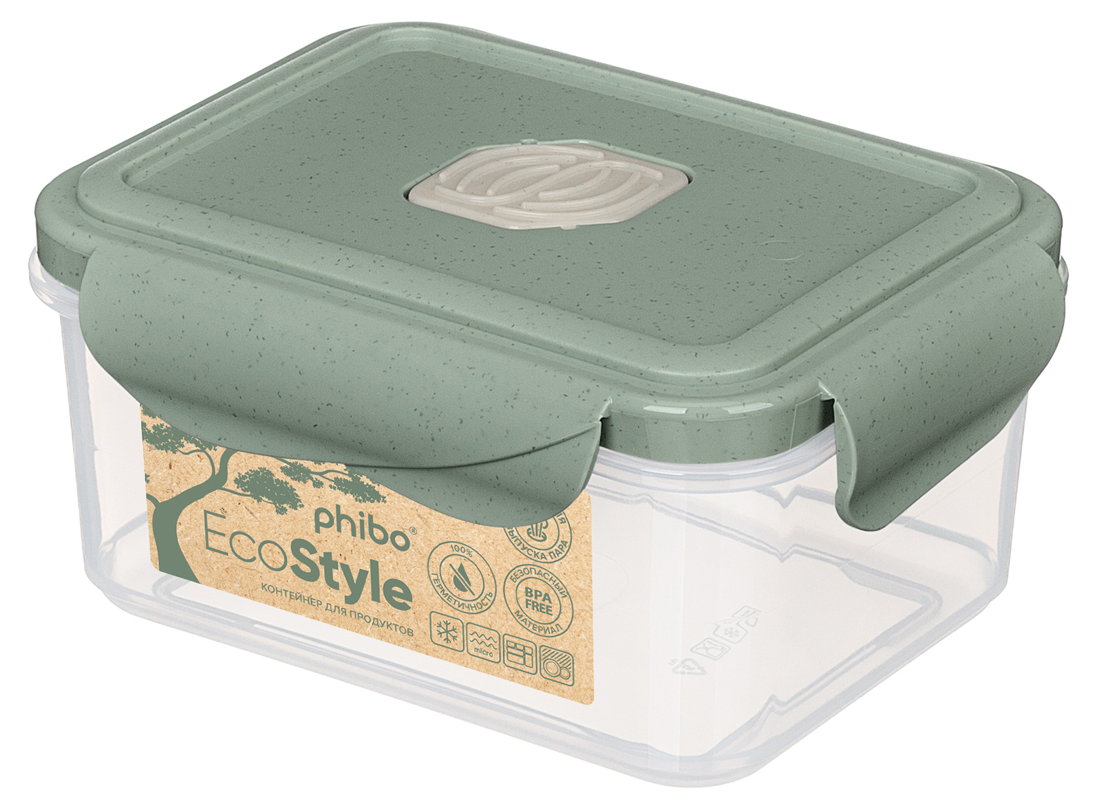 Контейнер пищевой герметичный с крышкой и клапаном 500 мл (Зеленый), Phibo