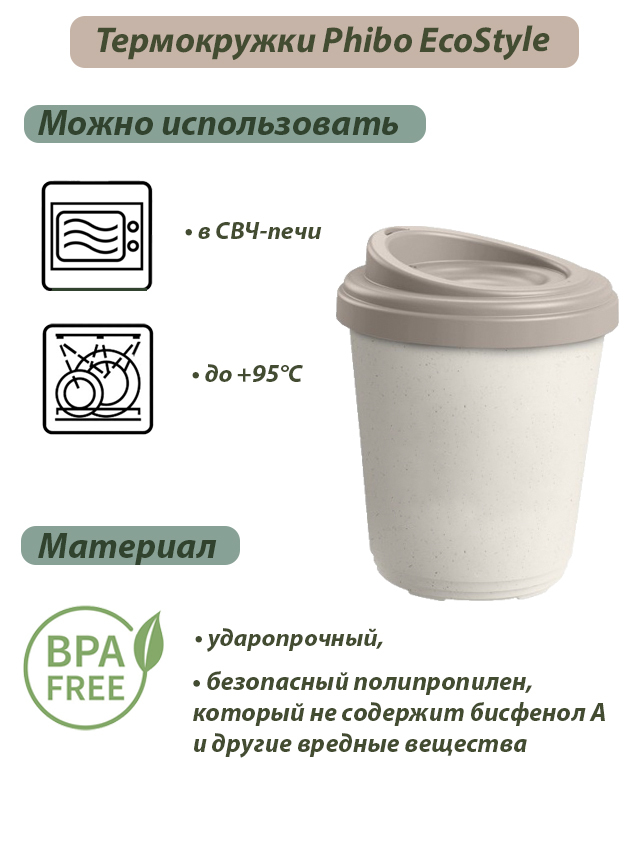 Термокружка Phibo EcoStyle для напитков горячих/холодных, 0.3 л