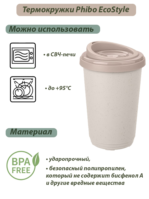 Термокружка Phibo Ecostyle для напитков горячих/холодных, 0.4 л
