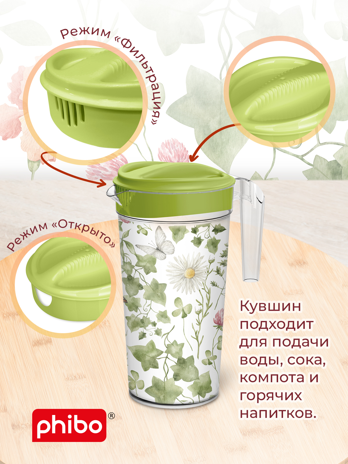 Кувшин для воды пластиковый 1,5 литра (Зеленый), Phibo