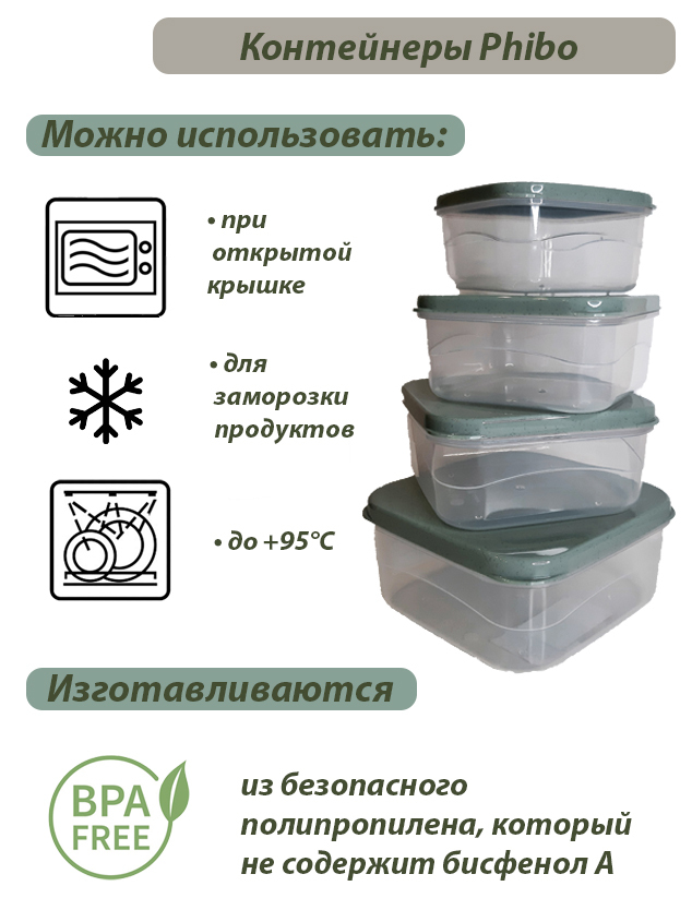 Контейнер пищевой герметичный с крышкой и клапаном 500 мл (Зеленый), Phibo