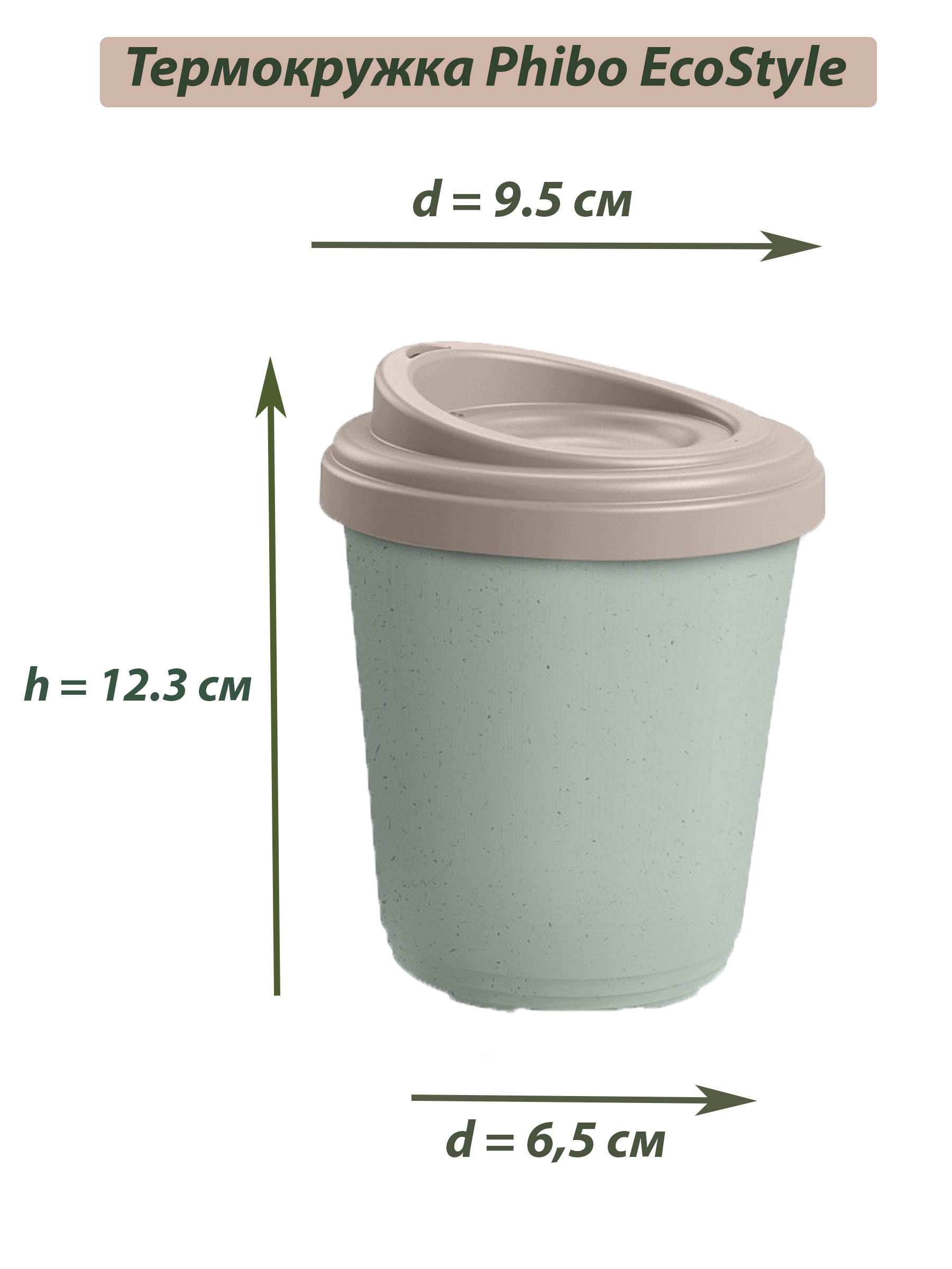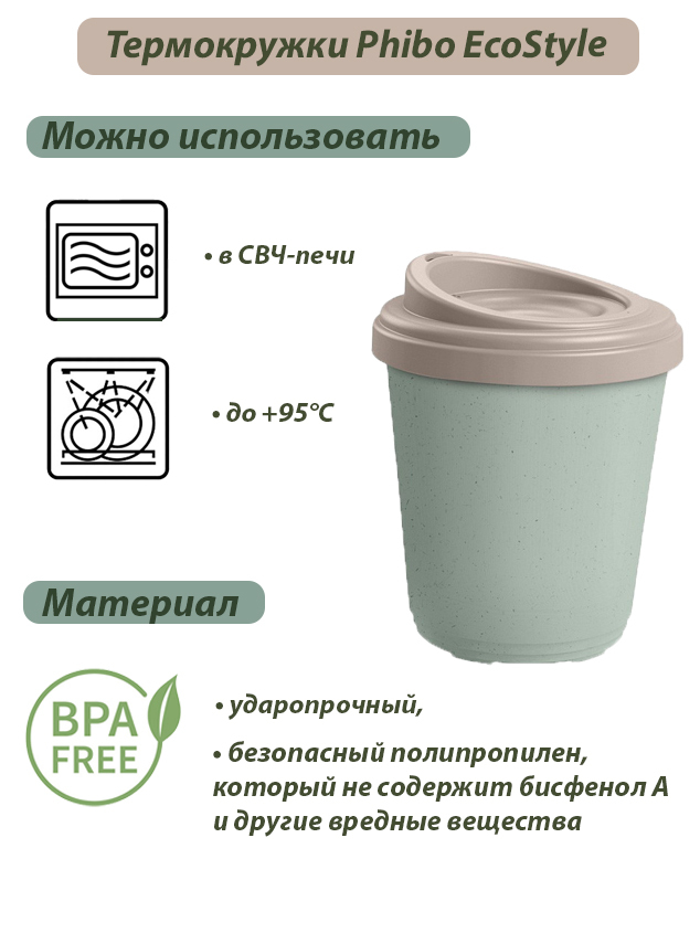 Термостакан Phibo EcoStyle для напитков горячих/холодных, зеленый флэк, 0.3 л