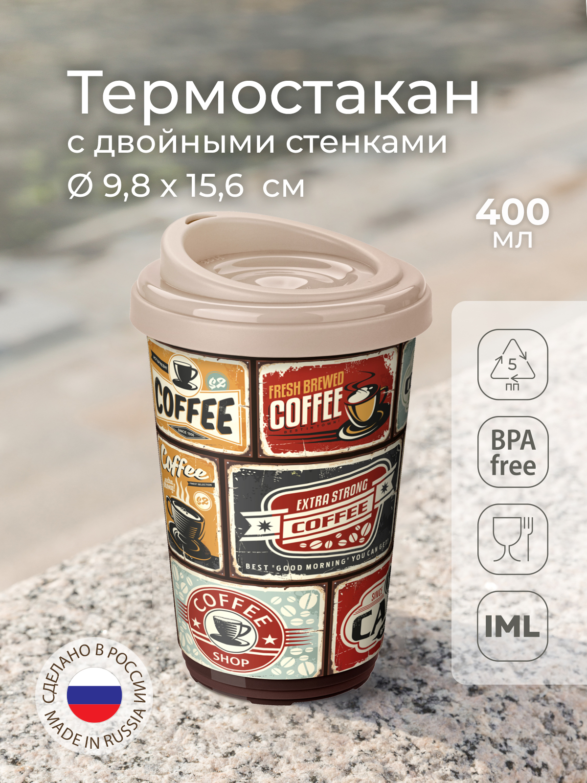 Термокружка, Автокружка Phibo ретро, 0.4 л