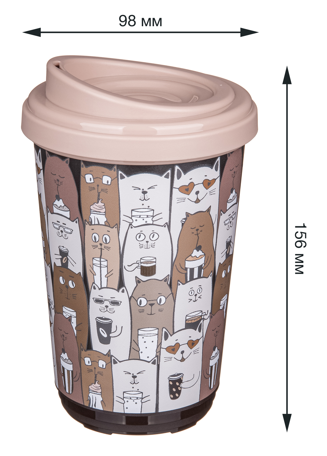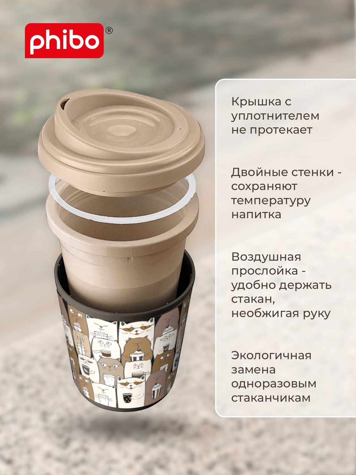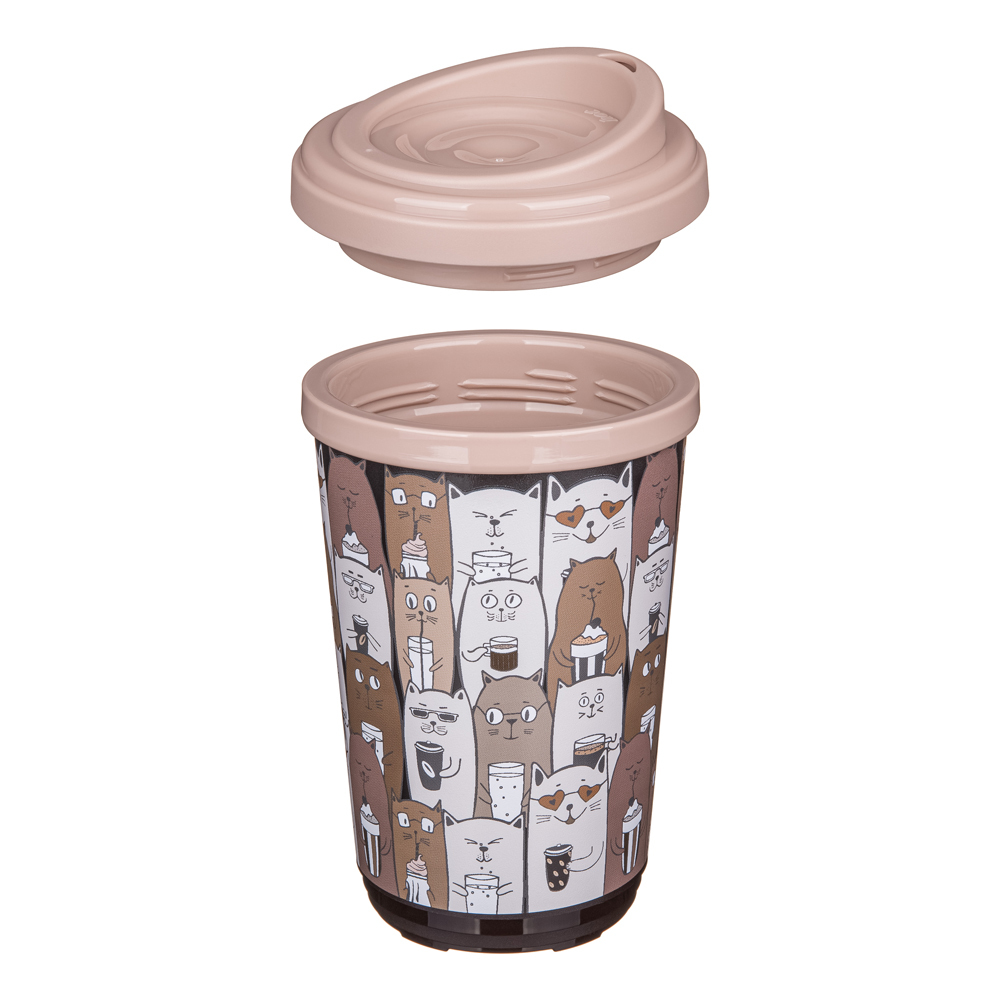 Термокружка с крышкой для кофе, чая, термостакан (Кошки) 400 мл, Phibo