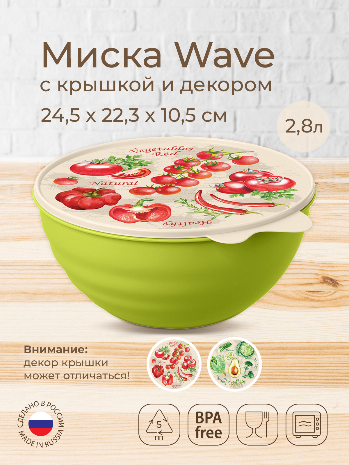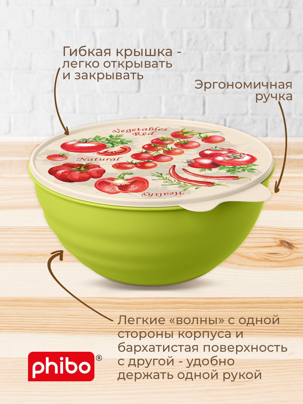 Миска с крышкой WAVE 2.8л (Зеленый), Phibo