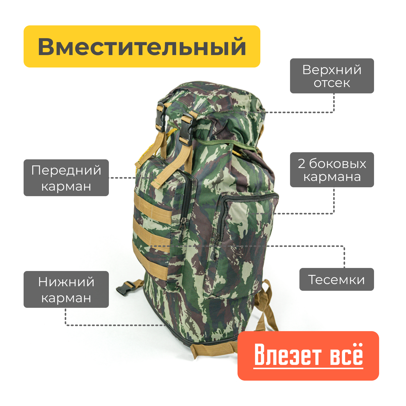 Рюкзак туристический Photo-Hunter Рюкзак походный / Рюкзак большой / Рюкзак для похода / Рюкзак 50 литров / серый, 60 л