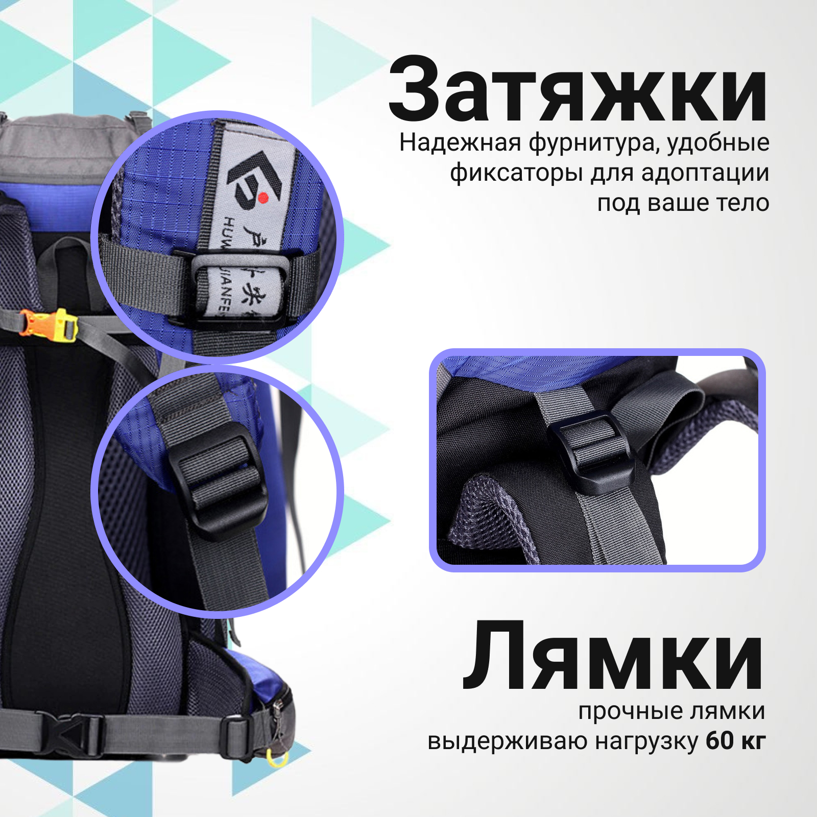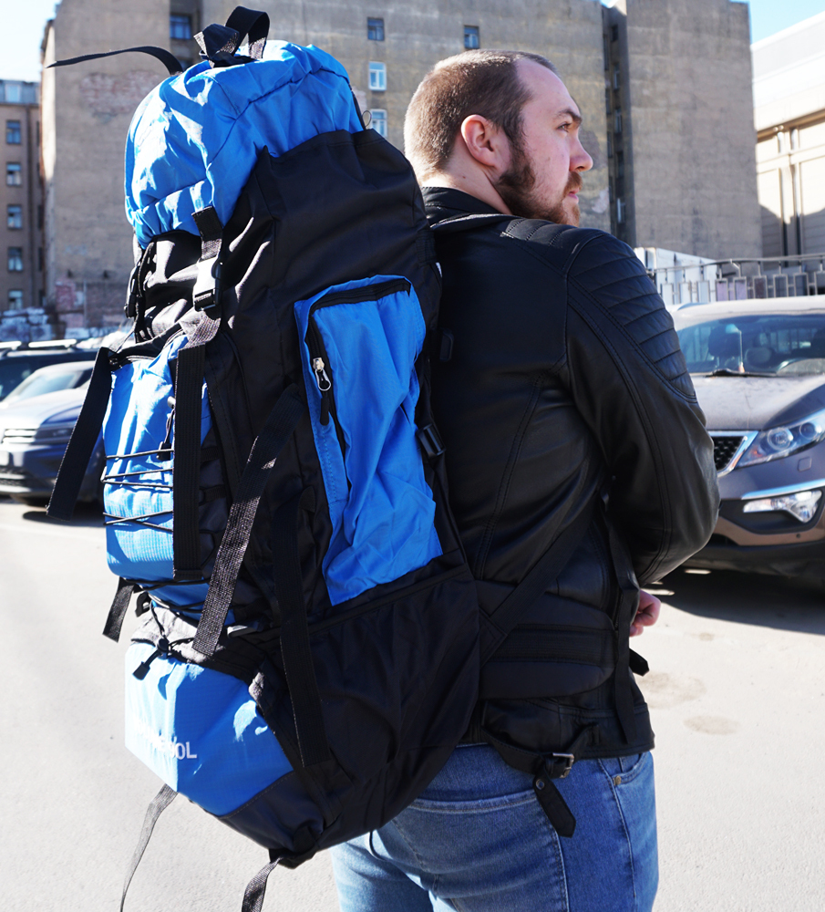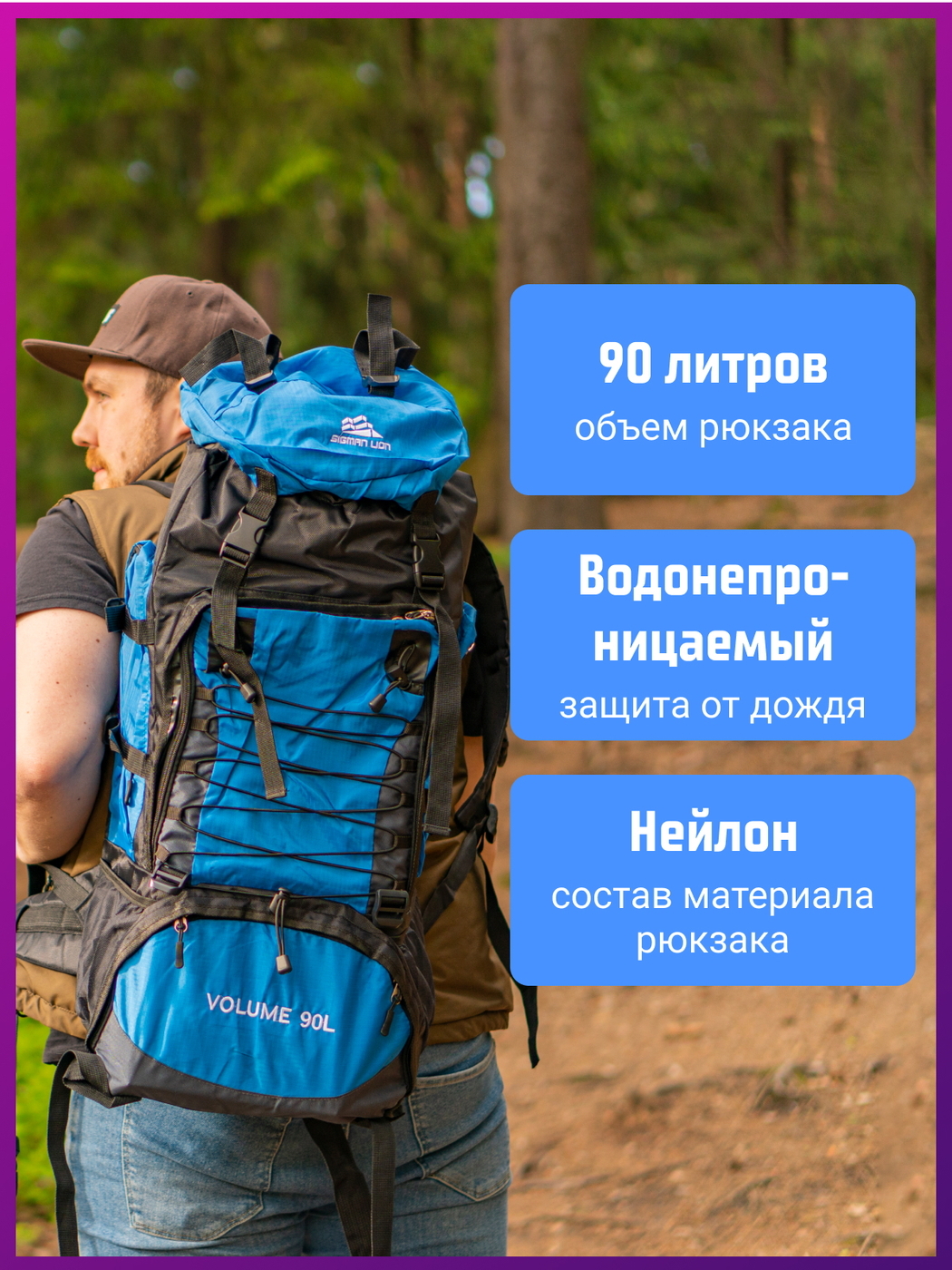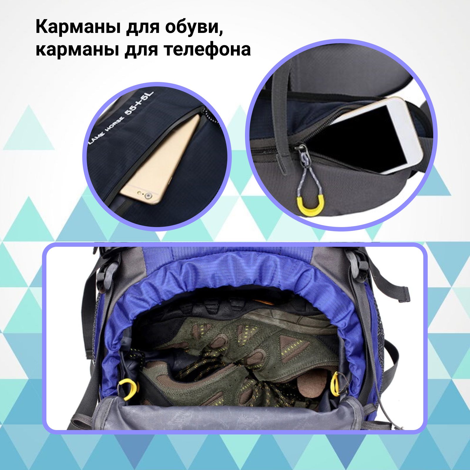 Рюкзак туристический Photo-Hunter Рюкзак походный / Рюкзак большой / Рюкзак для похода / Рюкзак 90 литров / голубой, 90 л
