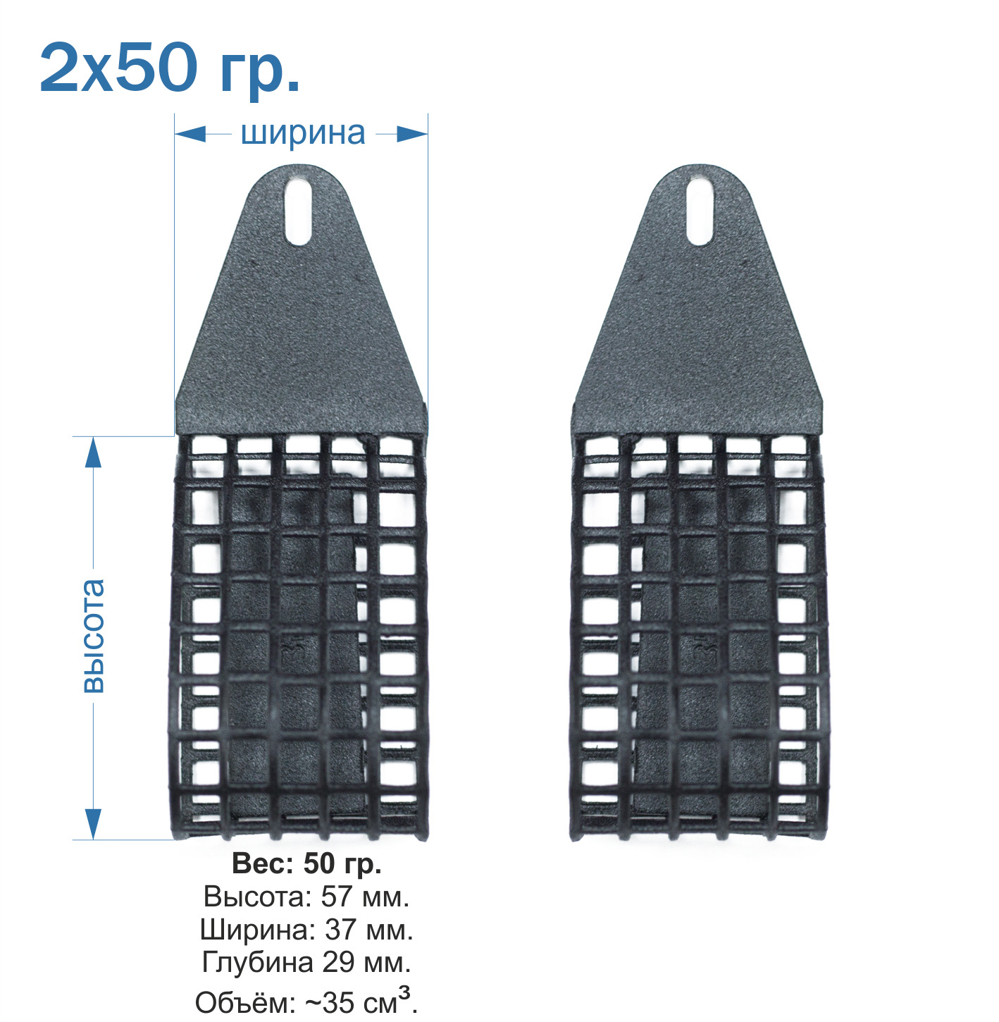 Кормушки рыболовные фидерные металлические 2 х 50г.