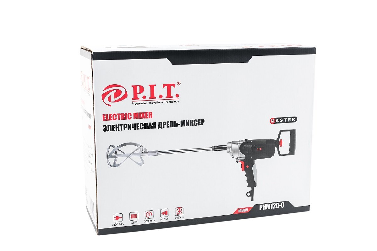 Дрель-миксер строительный P.I.T. PHM120-C, 1050Вт, регулировка скорости 0-550об/м, от сети 220В