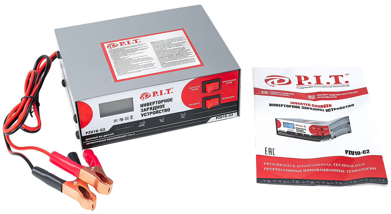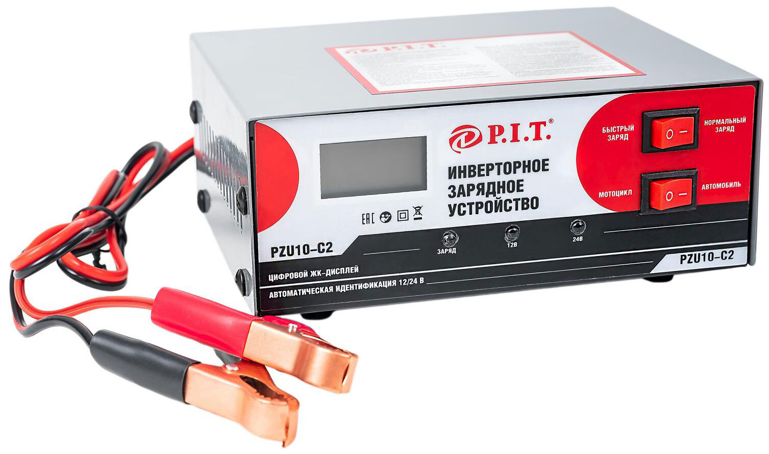 Зарядное устройство для автомобилей P.I.T. PZU10-C2 МАСТЕР (230В-50 Гц,12/24 В,6-100Ач,180Вт,дисп.)