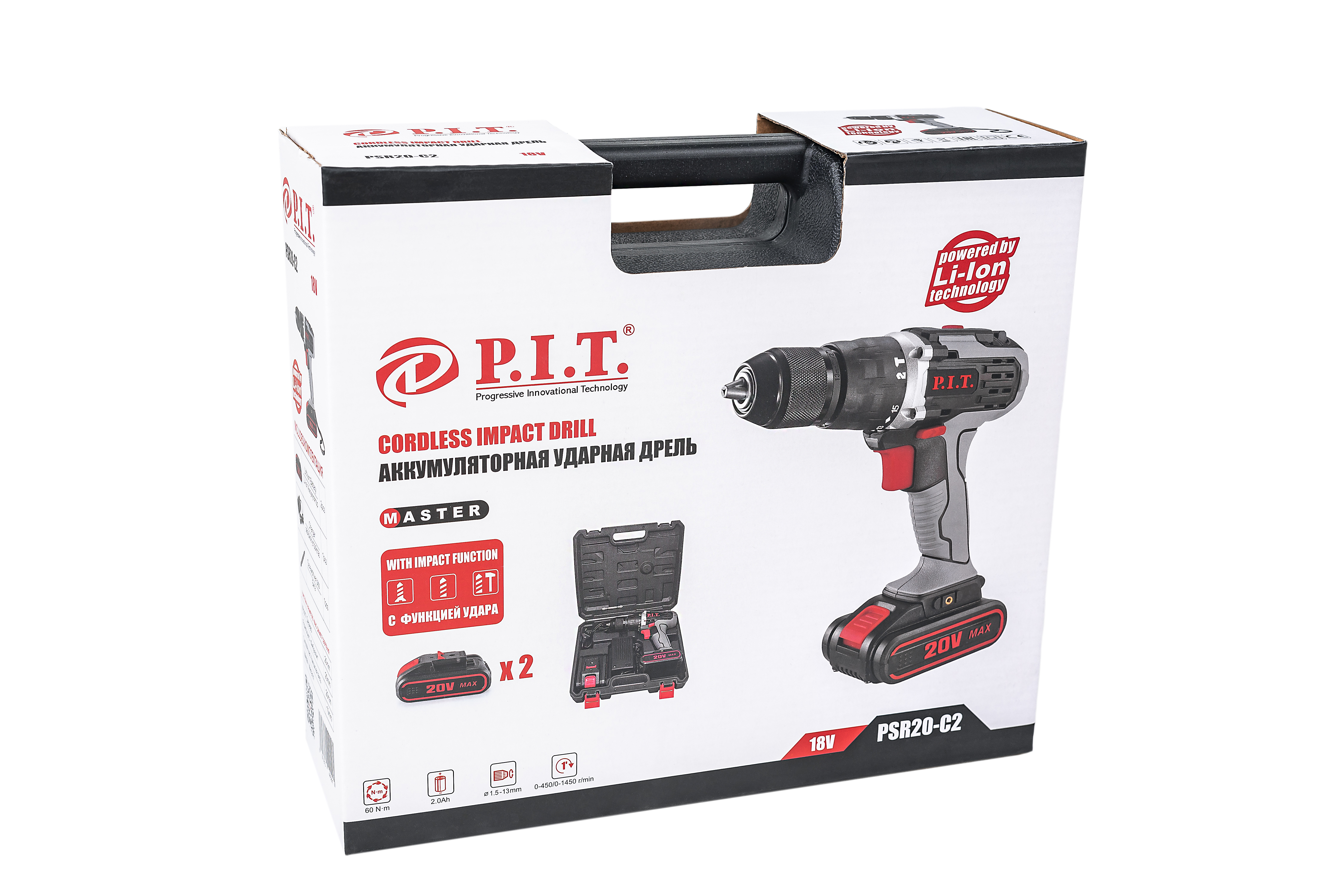 Дрель-шуруповерт P.I.T., От аккумулятора, 60 Нм, 2 АКБ