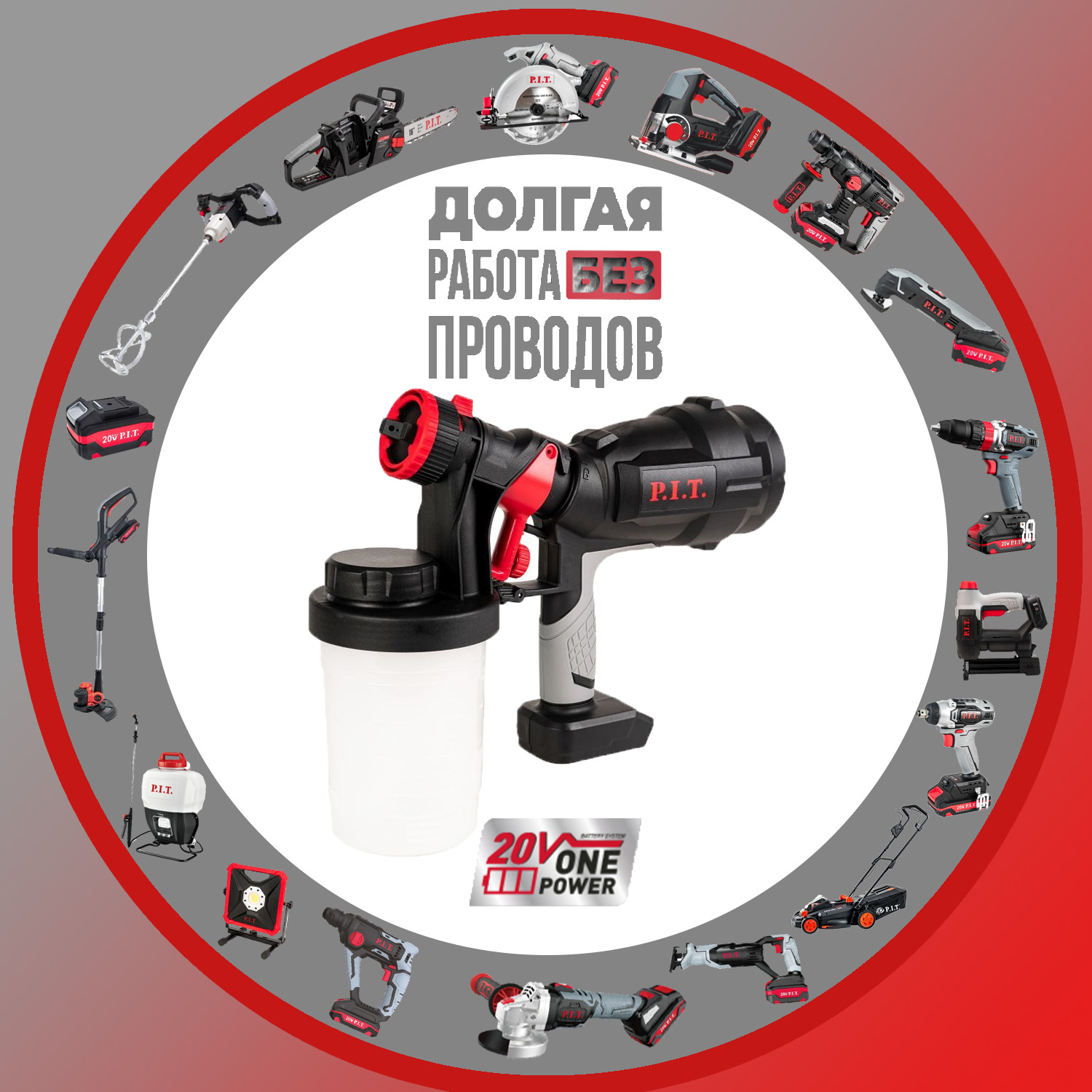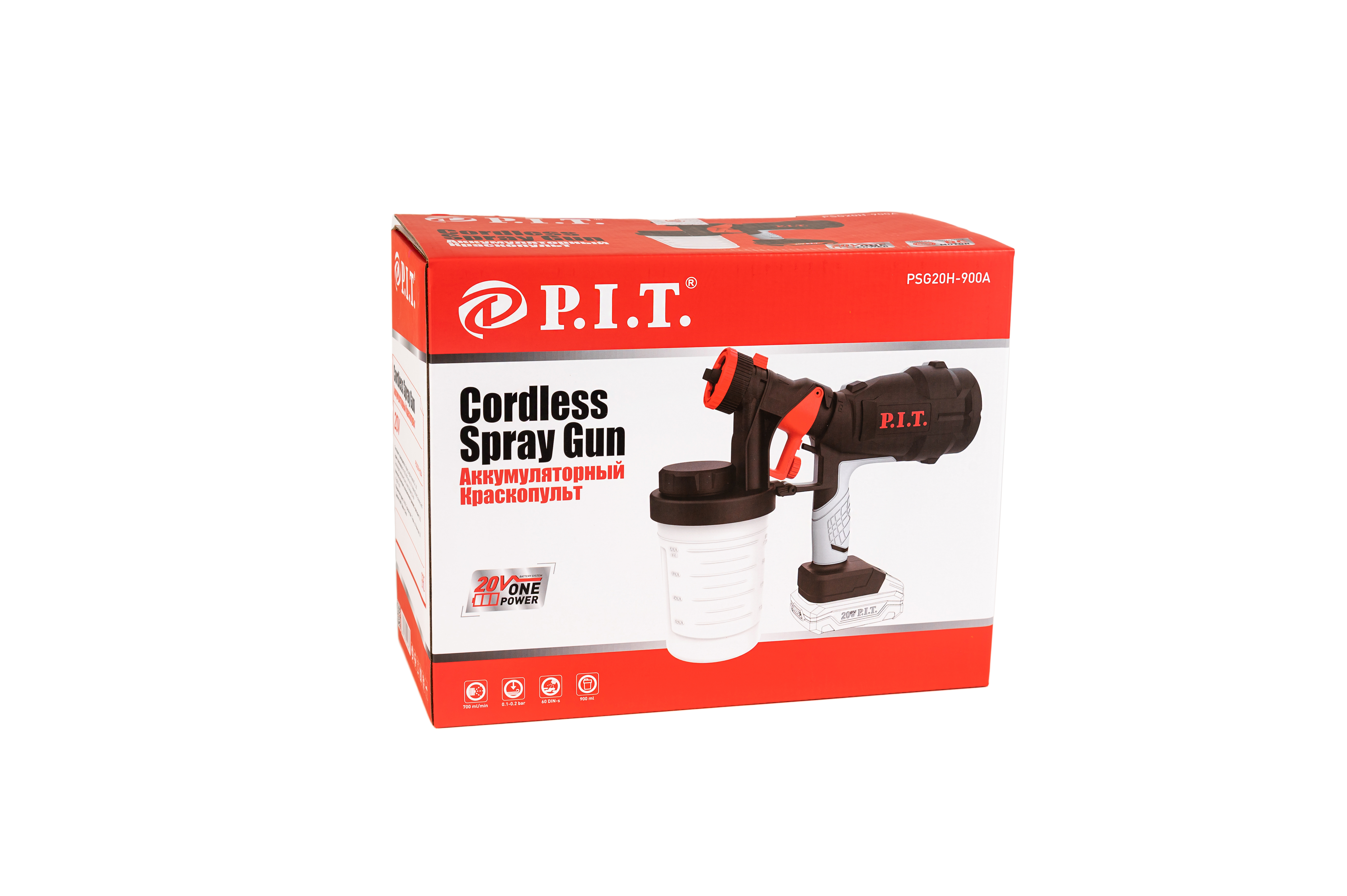 Краскопульт аккумуляторный P.I.T. OnePower PSG20H-900A SOLO, 20В, 700мл/мин, 900мл, без АКБ