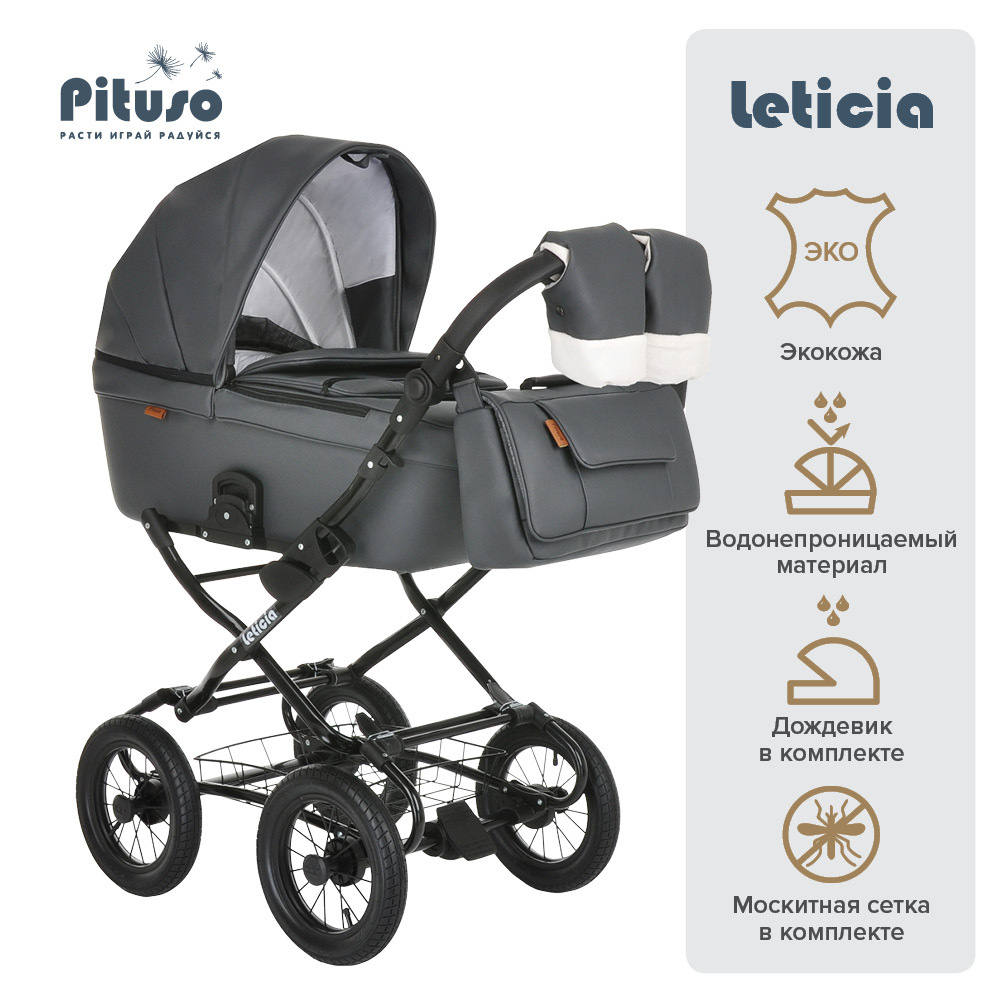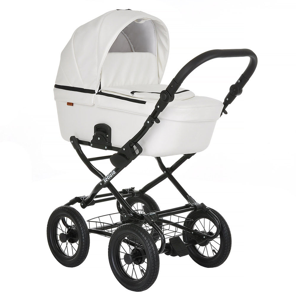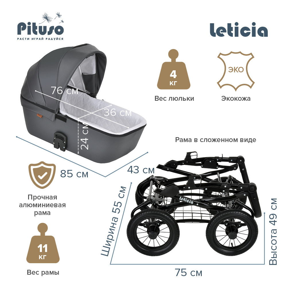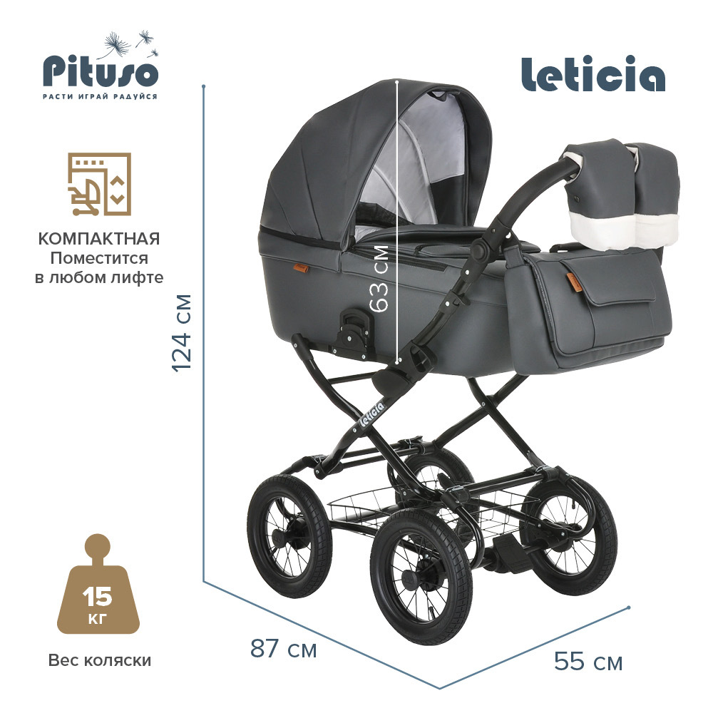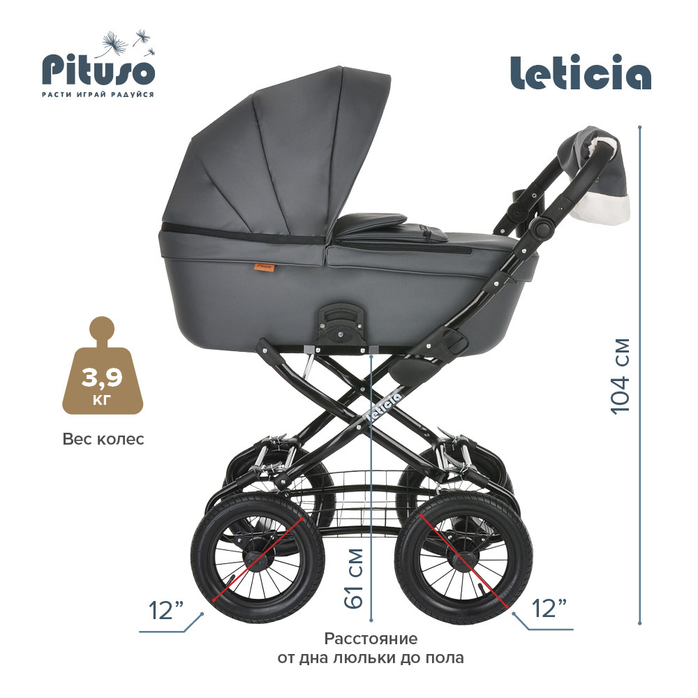 Детская коляска-люлька Pituso Leticia Classic колеса 12d Кожа White Metalic