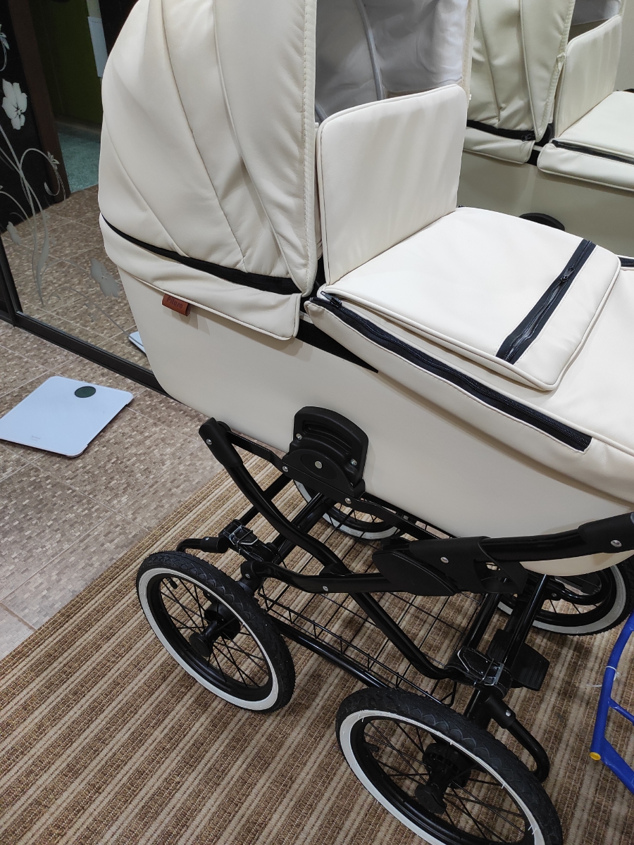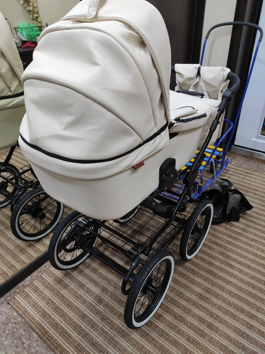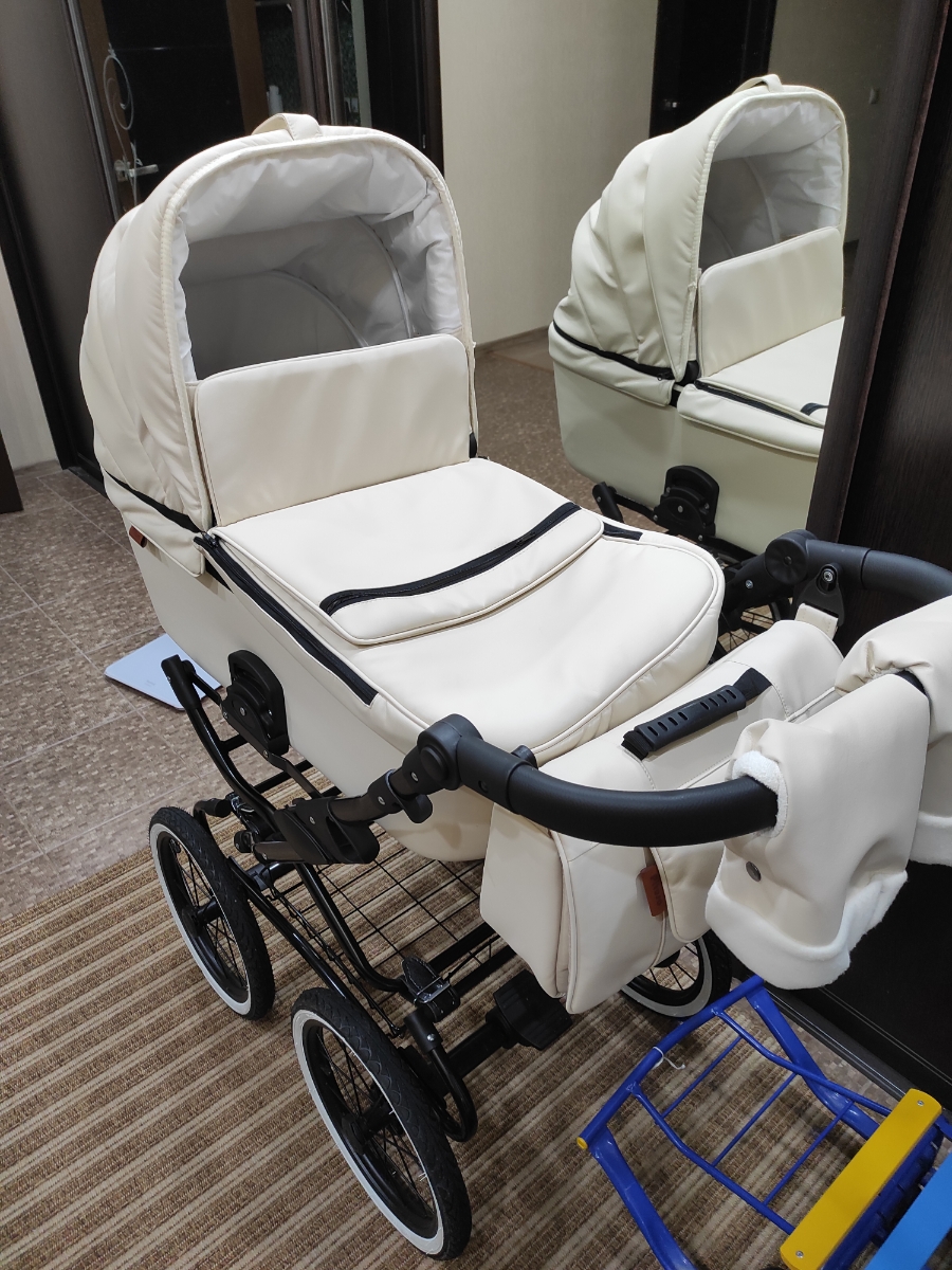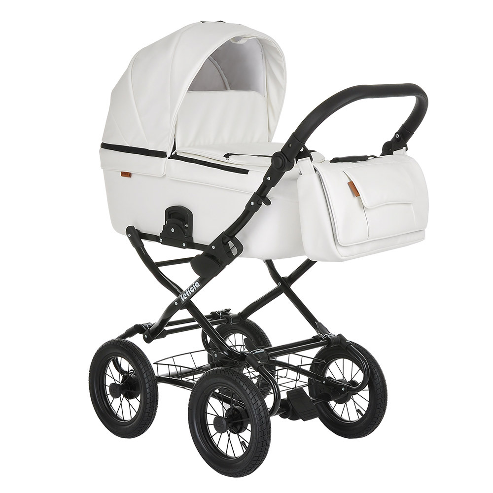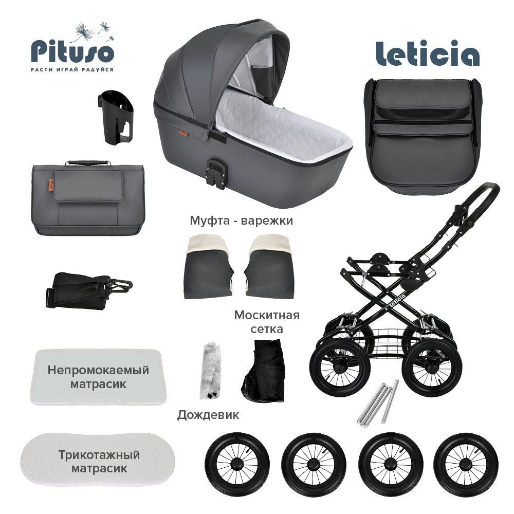 Детская коляска-люлька Pituso Leticia Classic колеса 12d Кожа White Metalic