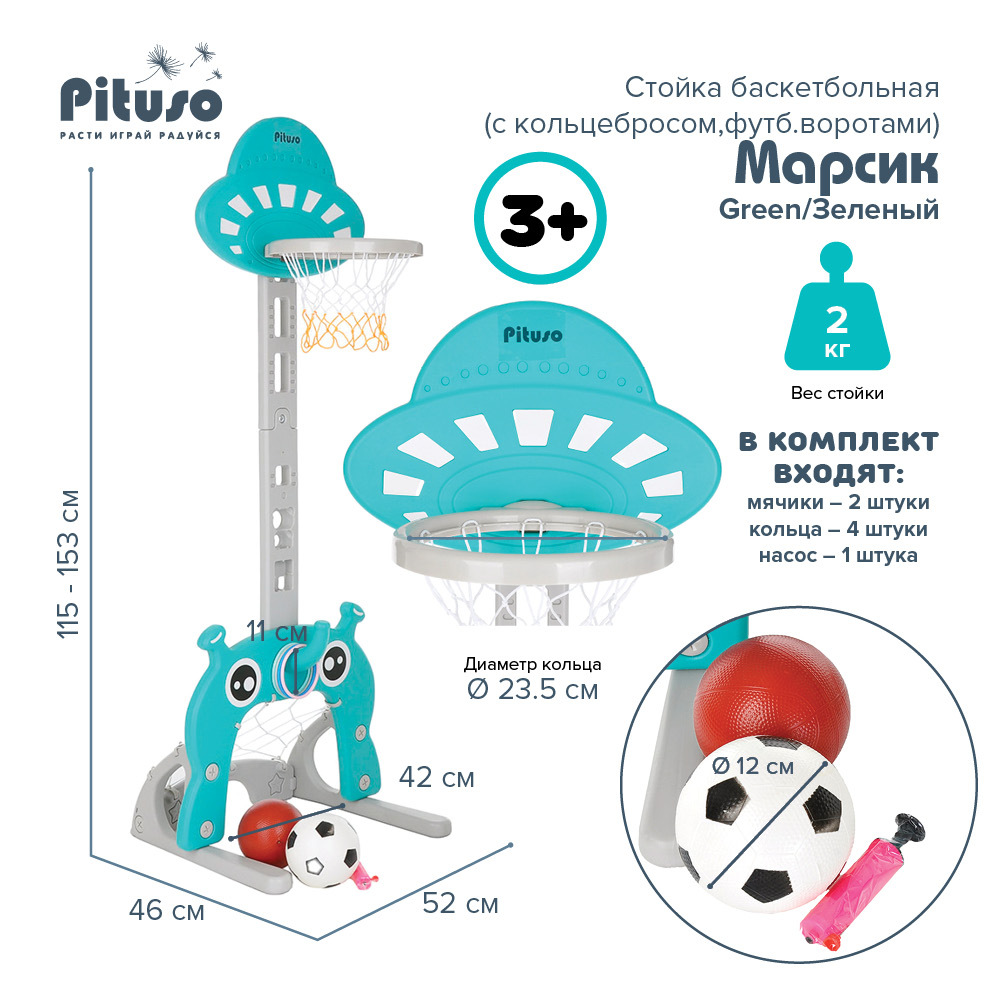 Стойка баскетбольная Pituso Марсик (с кольцебросом, футбольными воротами) Green/Зеленый