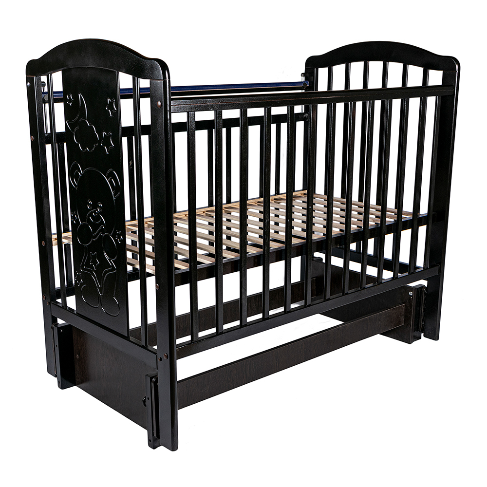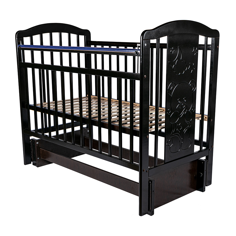 Детская кроватка Pituso Noli маятник универсальный с накладкой, съемные колесики Мишутка Венге