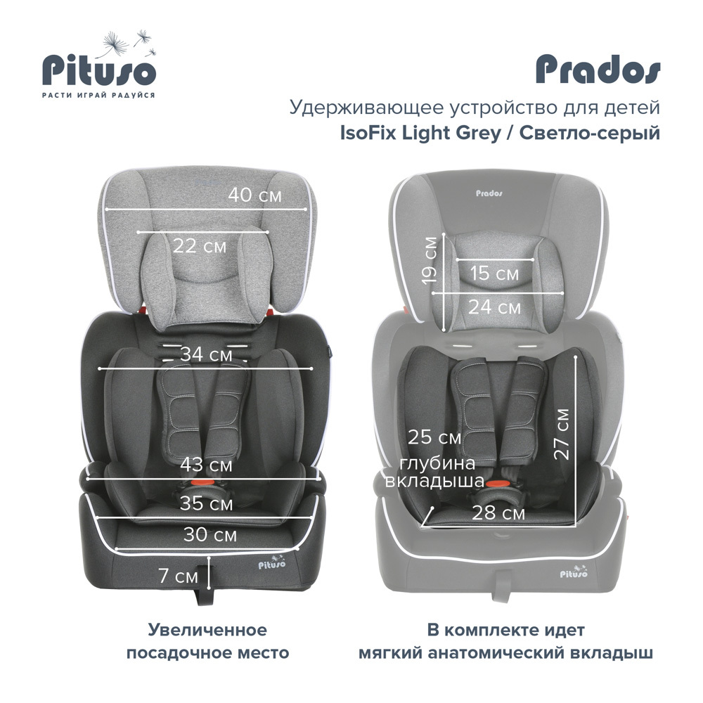 Автокресло группы 1/2/3 (9-36кг) Pituso Prados Light Grey/Cветло-cерый