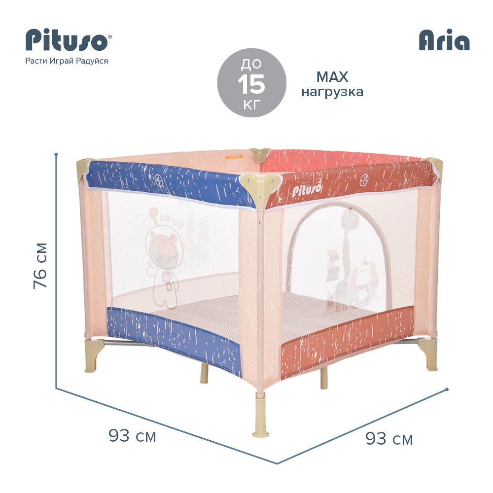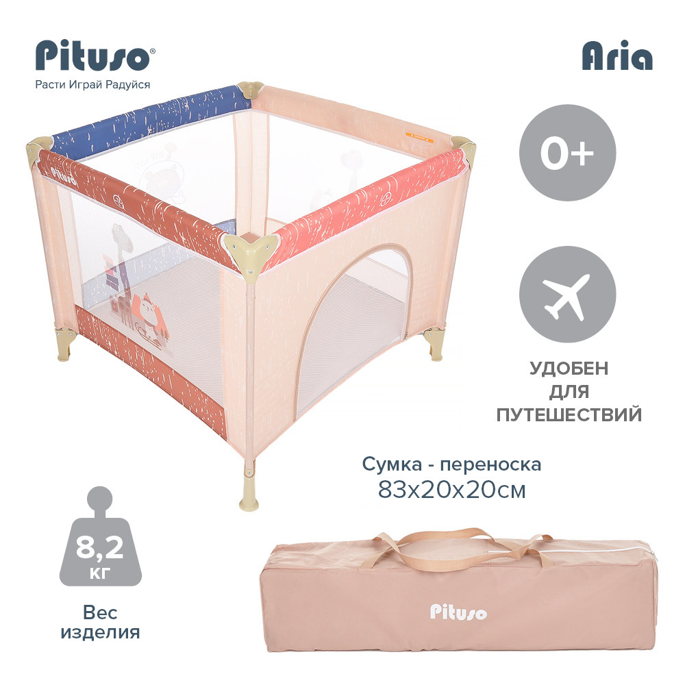 Манеж детский Pituso Aria одноуровневый, лаз на молнии, замок-фиксатор Jiraffe/Жираф P618-MIX04