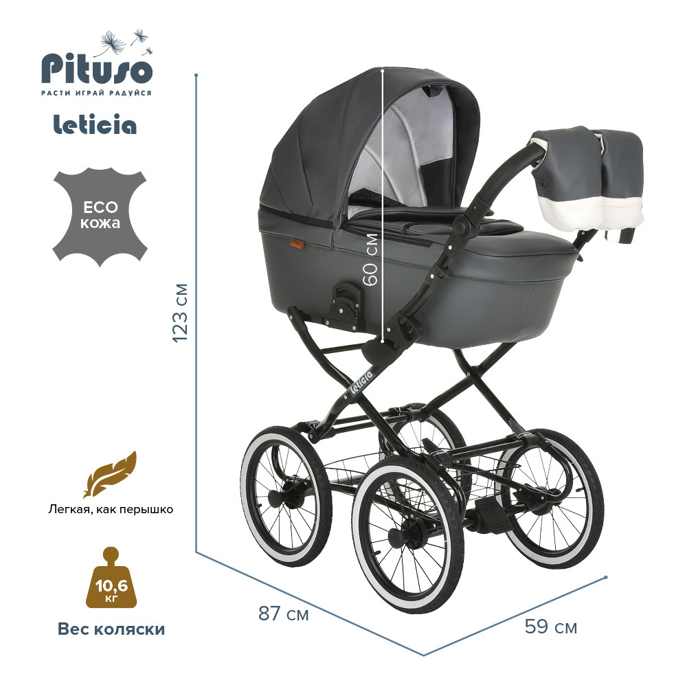 Коляска для новорожденных универсальная PITUSO 1 в 1 Nino короб+рама Antracyt+Кожа Metalic Venus