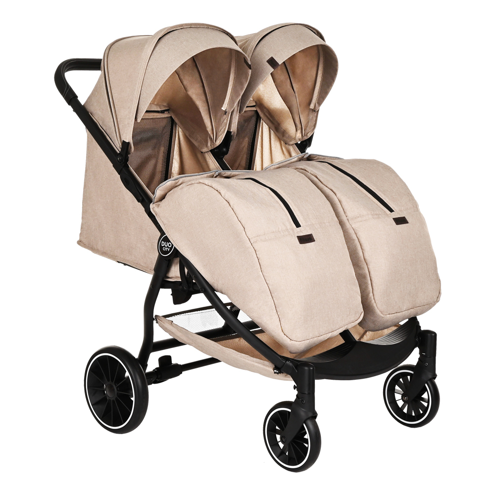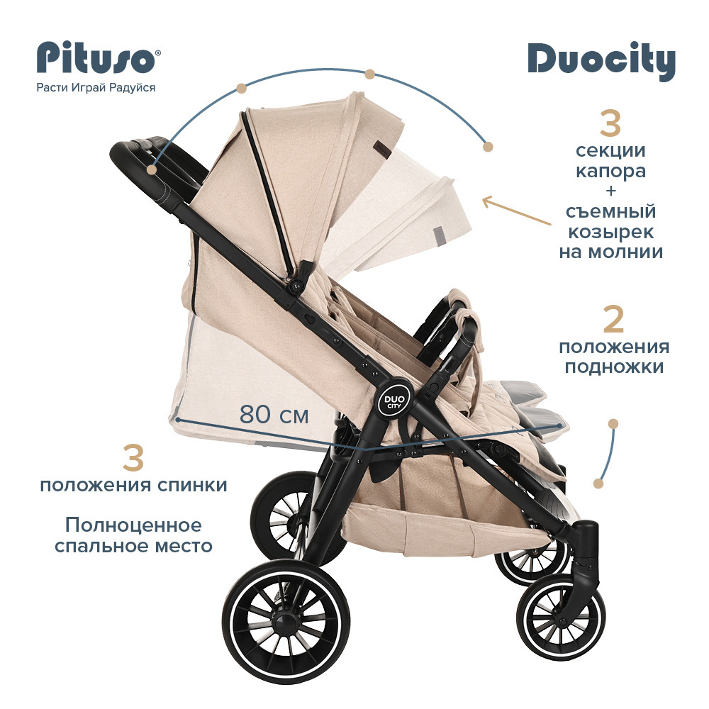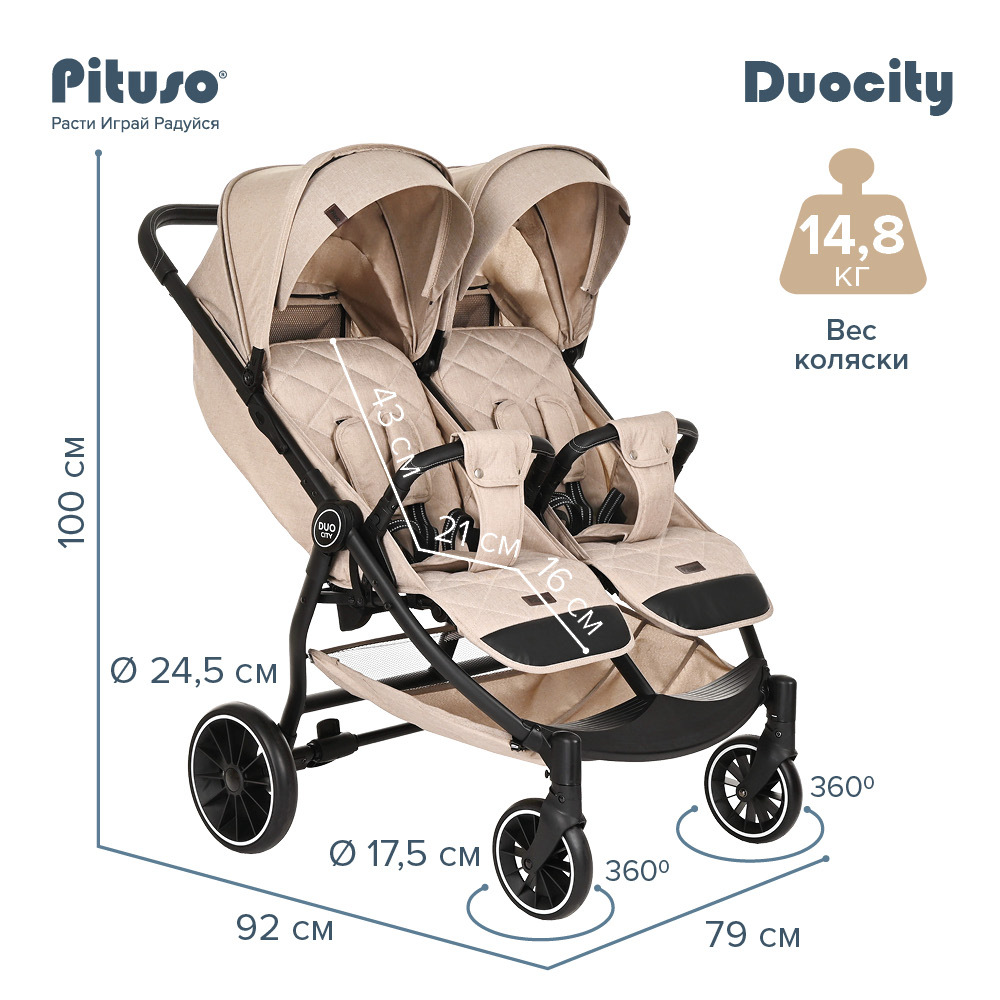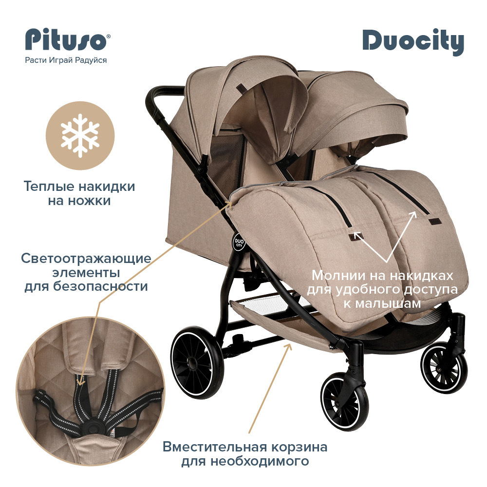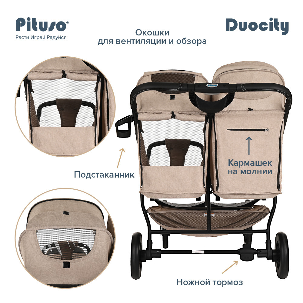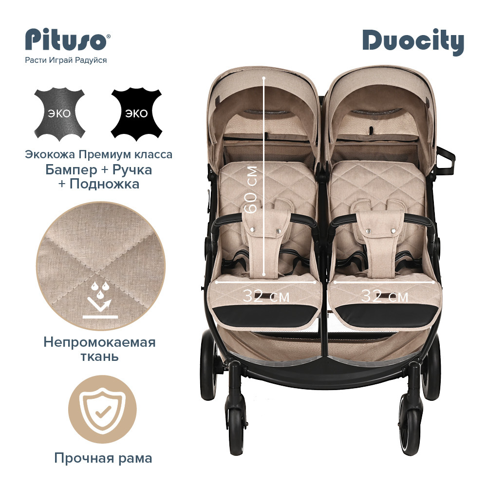 Детская коляска для двойни Pituso Duocity колеса EVA, чехол на ножки Cappuccino/Капучино