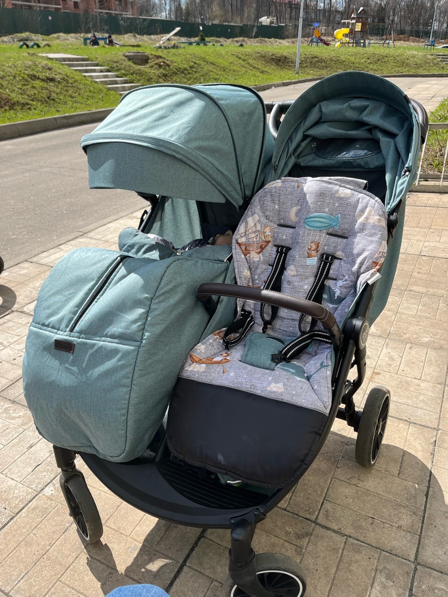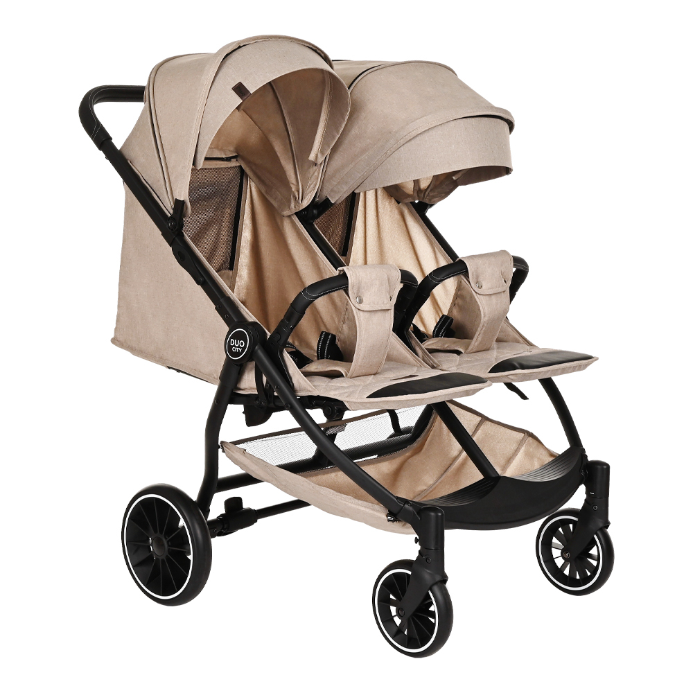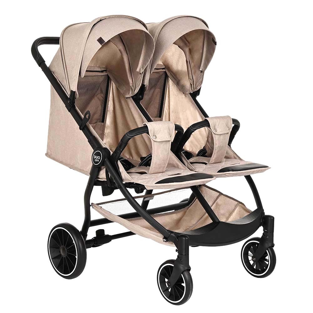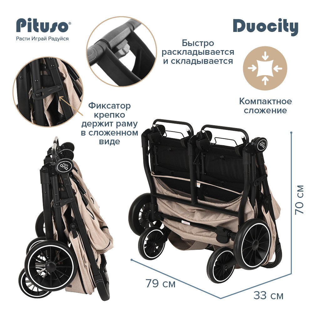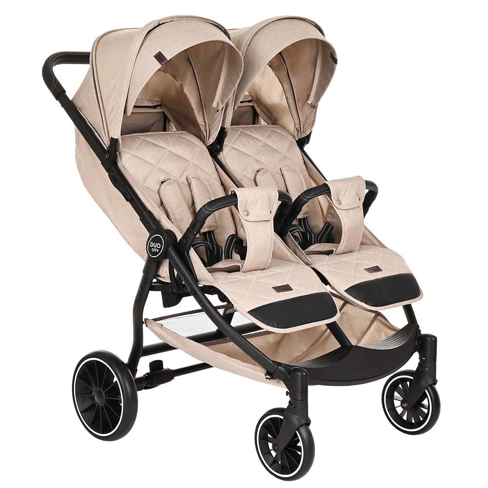 Детская коляска для двойни Pituso Duocity колеса EVA, чехол на ножки Cappuccino/Капучино