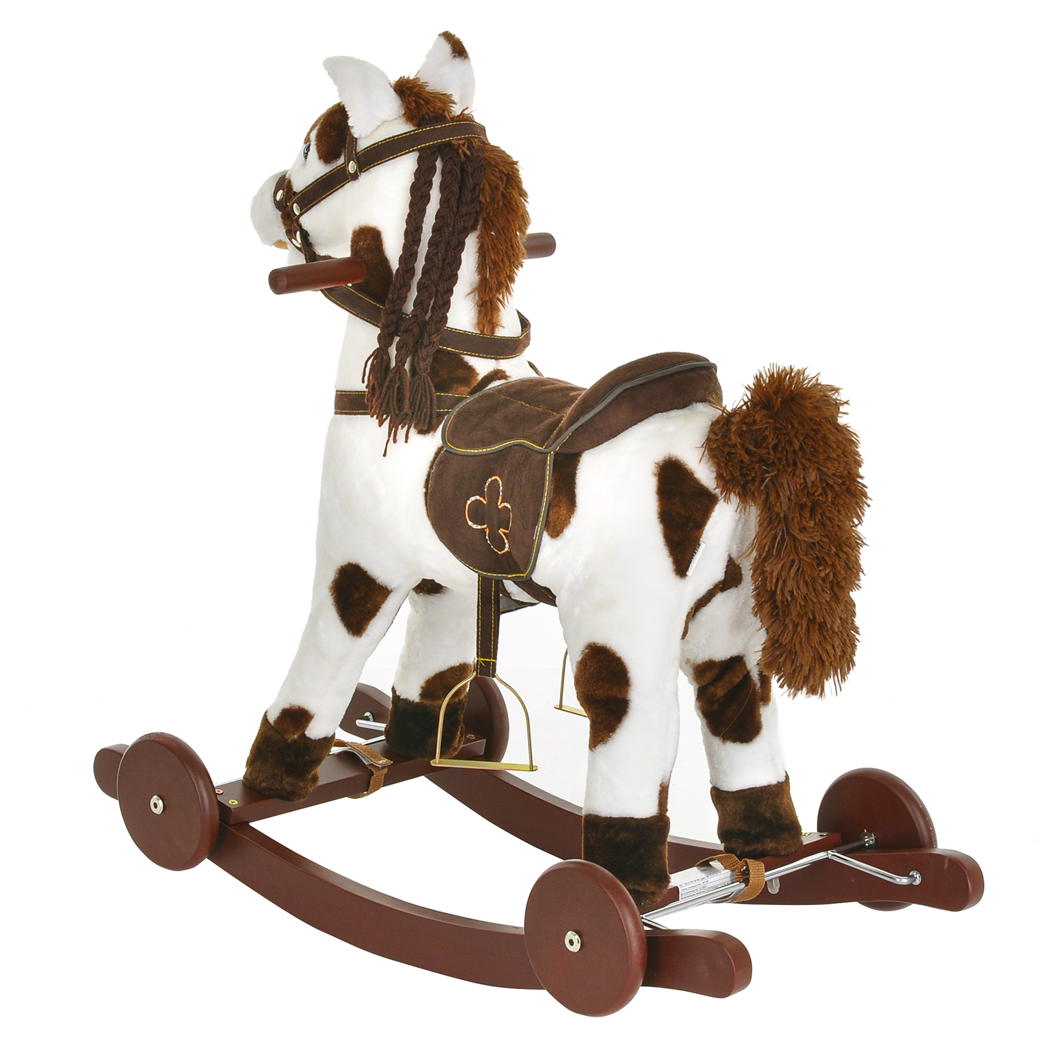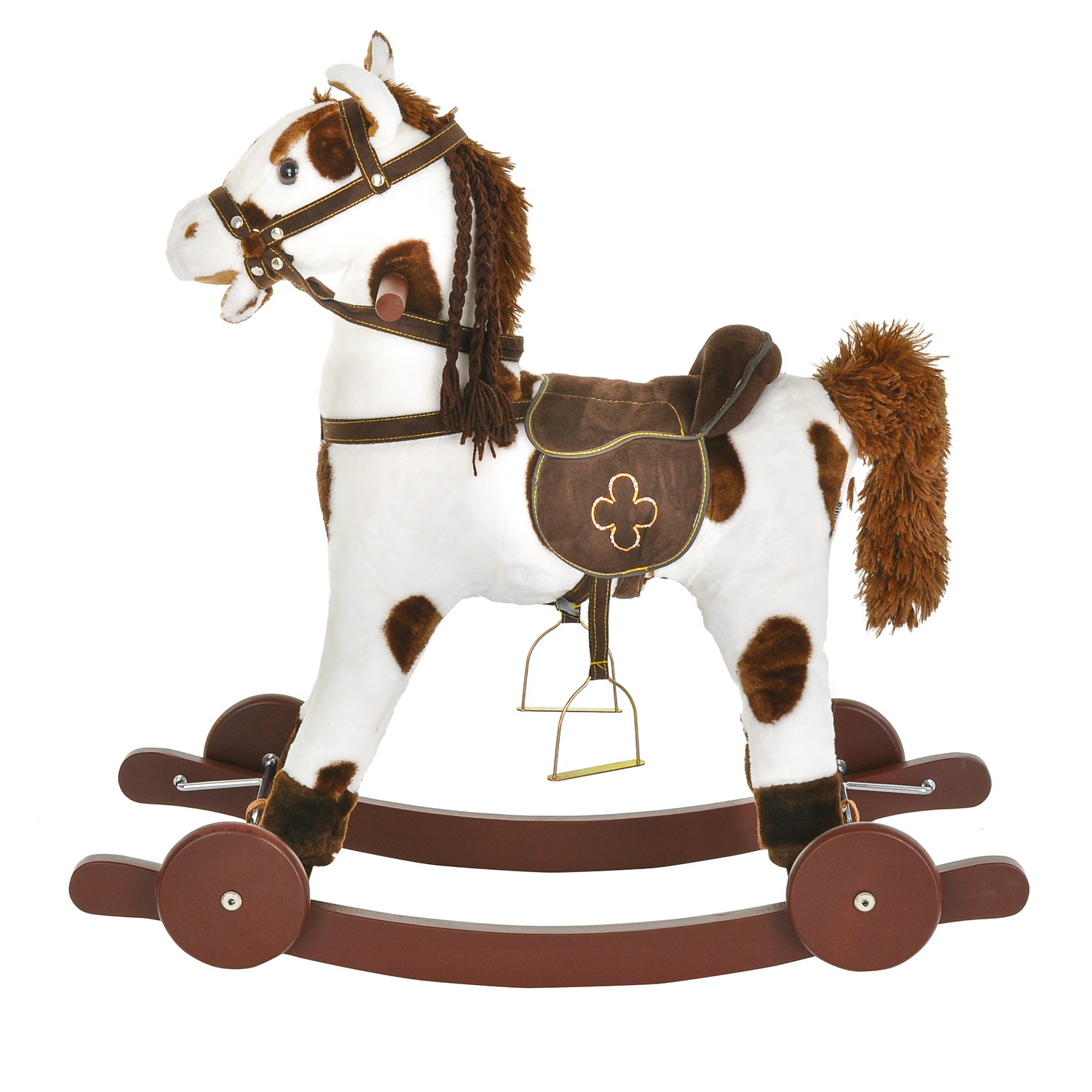 Качалка-лошадка Pituso с колёсами белая с коричневыми пятнами GS2090W
