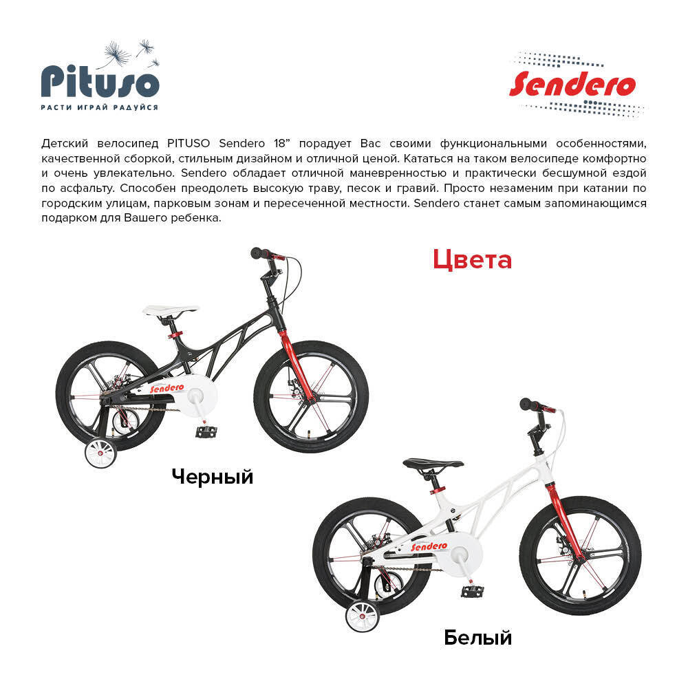 Детский велосипед PITUSO 18" Sendero 10.5" Белый