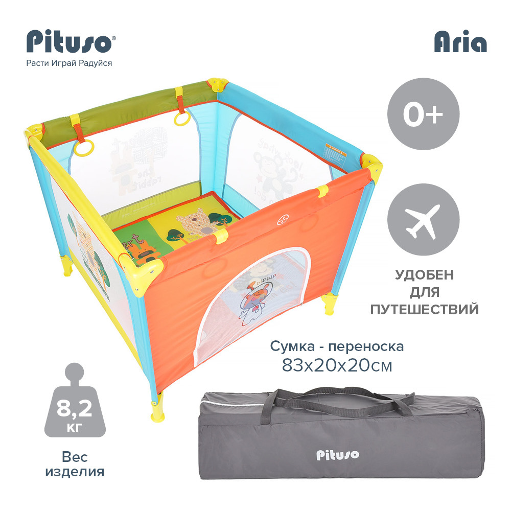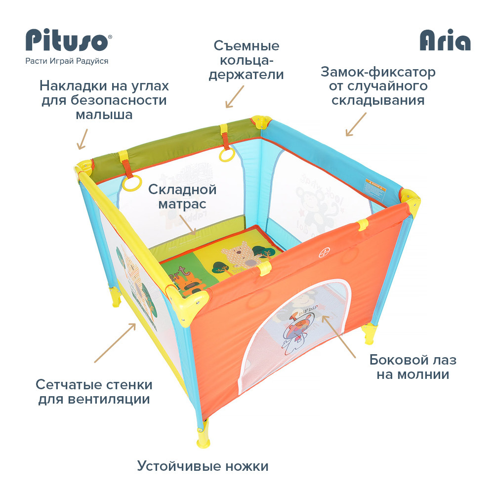Манеж детский Pituso Aria одноуровневый, лаз на молнии, замок-фиксатор Friends/Весёлые друзья P618RD