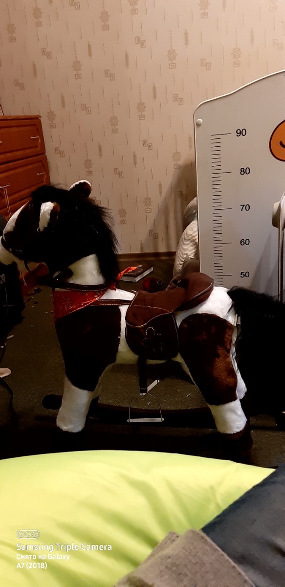 Качалка-лошадка Pituso с колёсами Белый с коричневыми пятнами