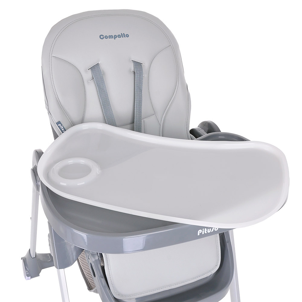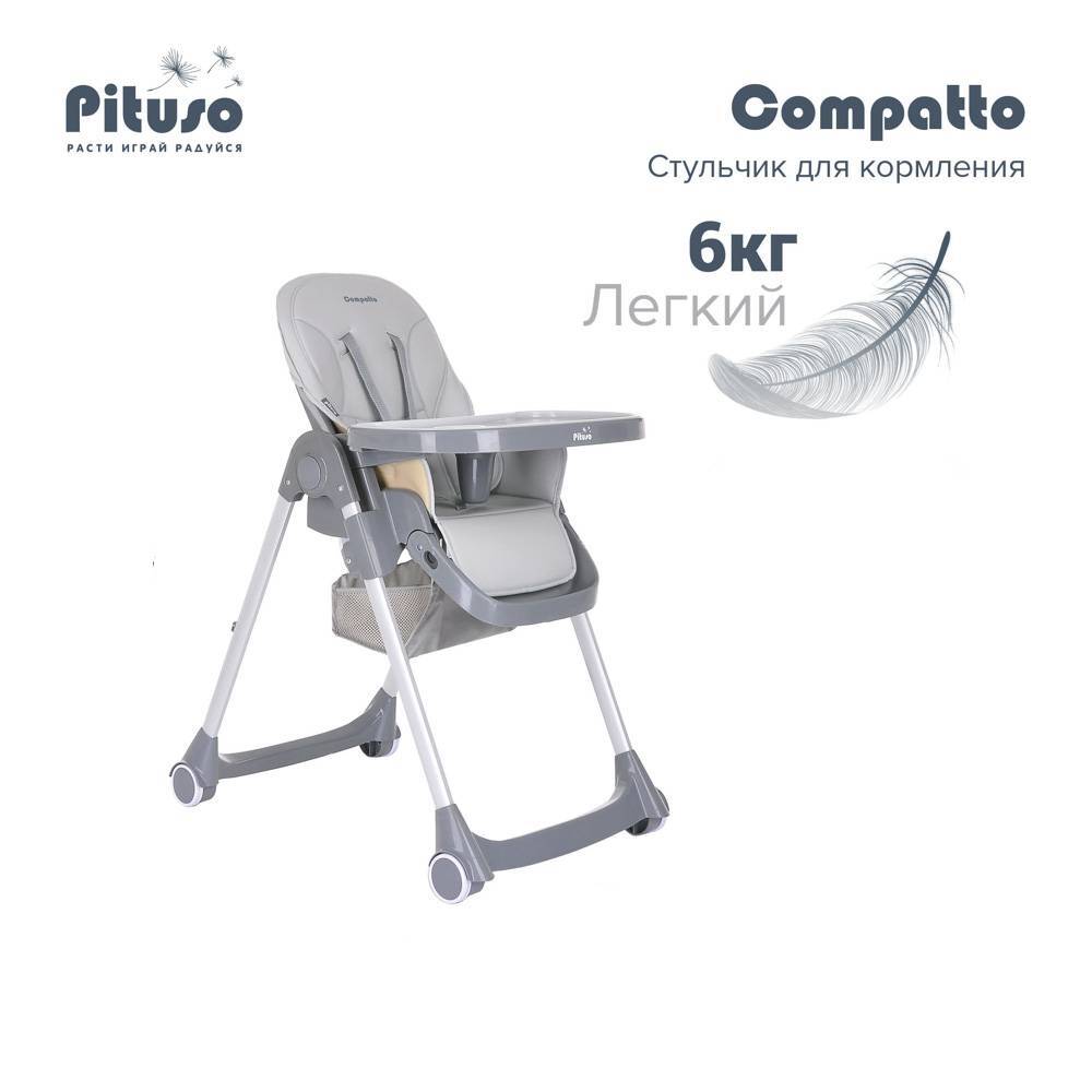 Стул для кормления детский Pituso Compatto 2 колесика, экокожа Light Grey/Светло-серый